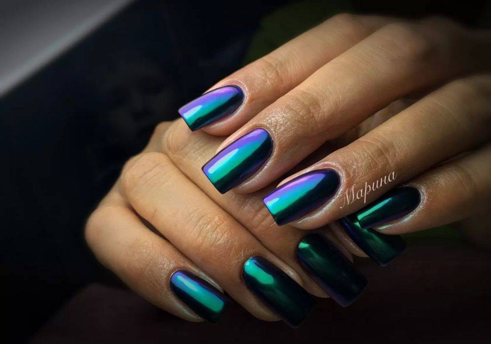 Ее название наиболее точно описывает эффект который достигается после нанесения. Часто она используется для цветных покрытий. На поверхности ногтя создаются переливы цвета с эффектом хамелеон напоминающим окраску крыльев майского жука. Самым популярным пигментом из этой серии является втирка TNL с одноименным названием. Много положительных отзывов в Интернете можно найти и о пигментах фирмы E.Mi. Но если вы хотите сэкономить, то закажите пигмент на Алиэкспресс китайского бренда Bornprattystore.