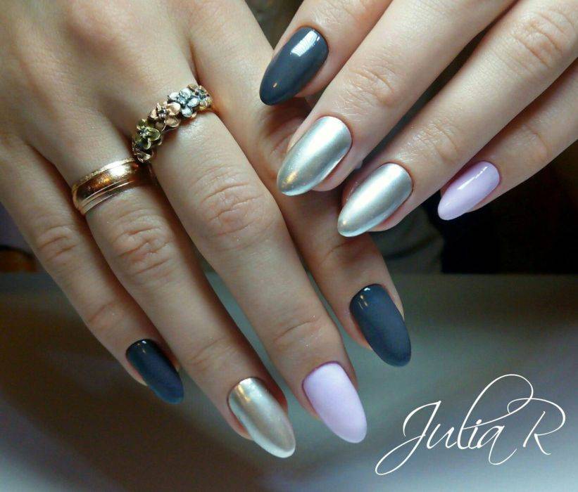 Если использовать выборочно матовость и глянец, то можно получить интересный маникюр для леди любого возраста.