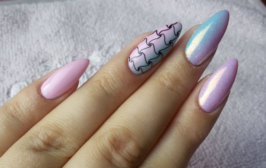 Самые стильные и популярные дизайны являются симбиозом простых рисунков, геометрических форм и различных текстур. Коралловый оттенок гель-лака идеально сочетается с черным, серым и белым цветом. Это классика, которая никогда не устареет. Стильно смотрится подобный дизайн, выполненный на камуфляже.