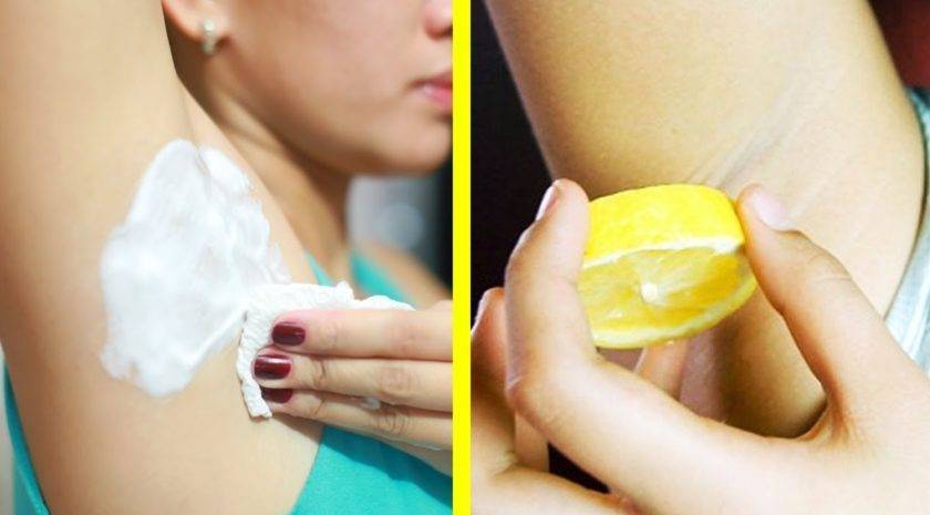 - Лимонный сок. Лимон часто используют при инфекционных заболеваниях, поскольку он эффективно убивает бактерии, при устранении потоотделения действует тот же принцип. Нужно выдавить сок лимона на ватный диск — достаточно всего одного ломтика цитруса — и протереть им область под мышками, которые должны быть предварительно вымыты и высушены. Лимонная кислота убивает бактерии, из-за жизнедеятельности которых образуется неприятный запах, и подсушивает кожу, что обеспечивает уменьшение потоотделения. Но этот рецепт нельзя использовать при тактильной аллергии на лимон и в случае недавней эпиляции подмышек (должно пройти не менее суток).