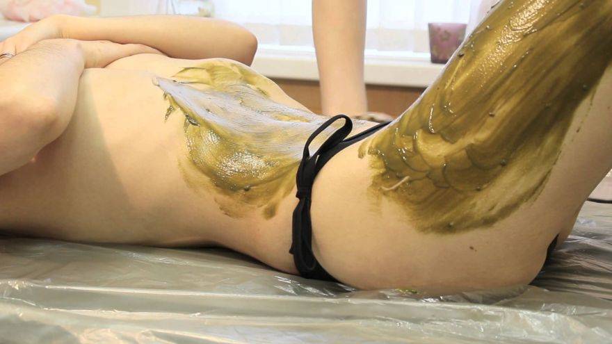 - теперь можно приступать к нанесению смеси для обертываний. Наносите ее теплой на проблемные зоны либо на все тело;