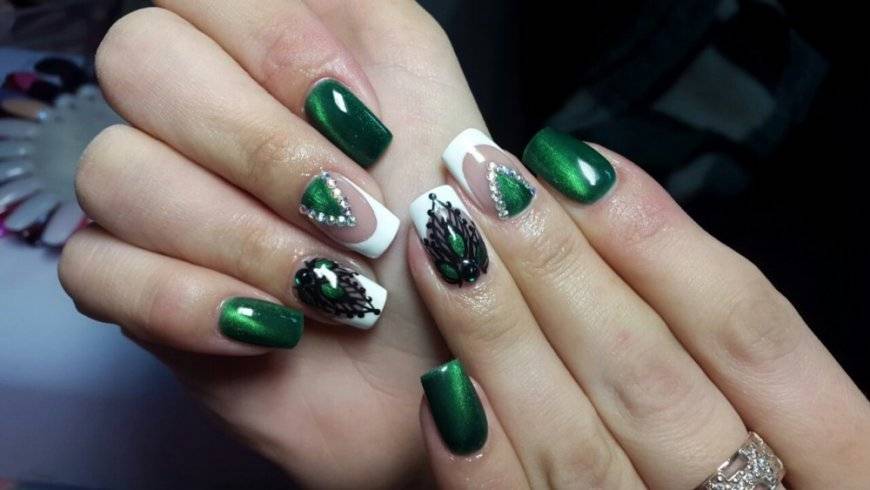Такой элегантный узор украшает любые ноготки – короткие, длинные, натуральные и искусственные. Зеленый цвет действительно максимально приближен к тому, какие глаза у представителей кошачьих в природе.