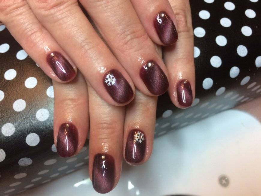 На фото приведен пример именно классического маникюра в этом стиле. Специальный магнит распределяет металлические частички так, что образуется интересный оттенок из одного базового цвета. Добиться такого же эффекта без магнита невозможно.