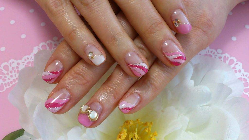 Стразы, как дополнительный элемент декорирования, могут находиться в любом месте на ногте, могут быть размещены в форме какой-либо фигуры, узора, могут размещаться хаотично.