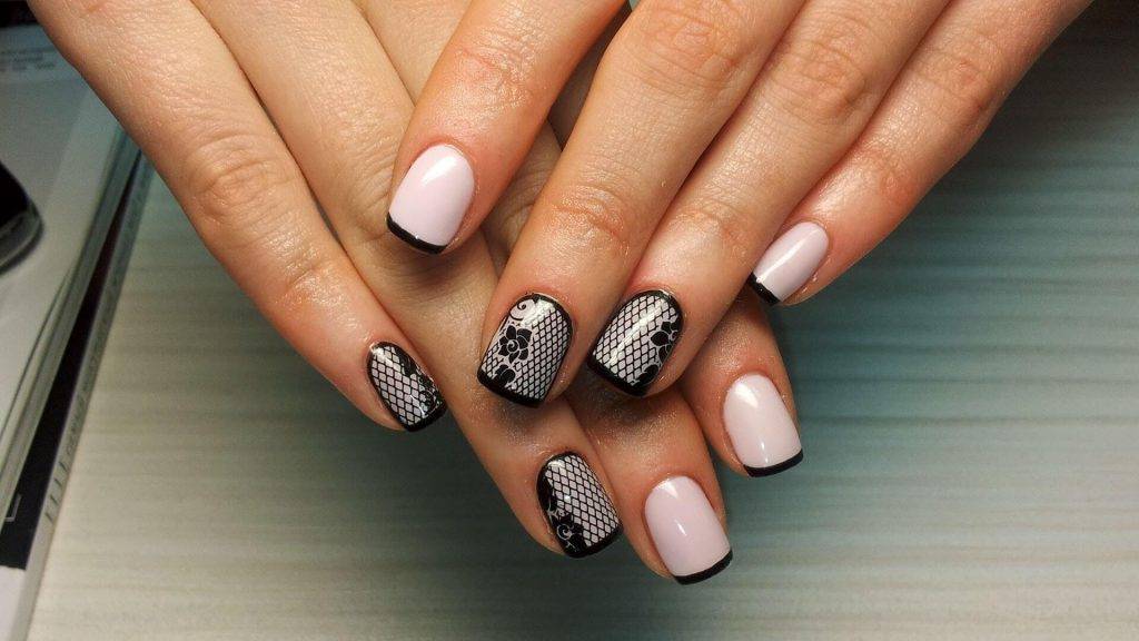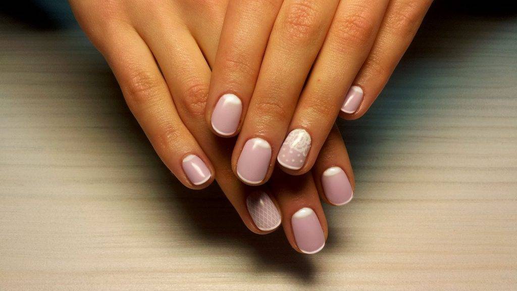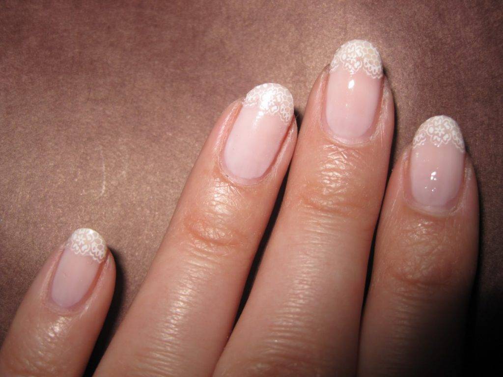 Если вы предпочитаете лаконичный классический французский маникюр, то разнообразить его помогут белые кружевные орнаменты.