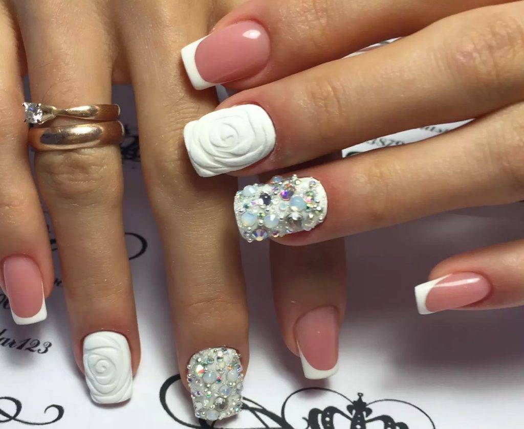 Более того, в свадебном маникюре 2020 также очень модно использовать именно этот дизайн.