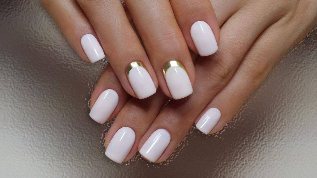 - покрыть ногти базовым цветом, например, белым, а лунки выделить разными цветами;