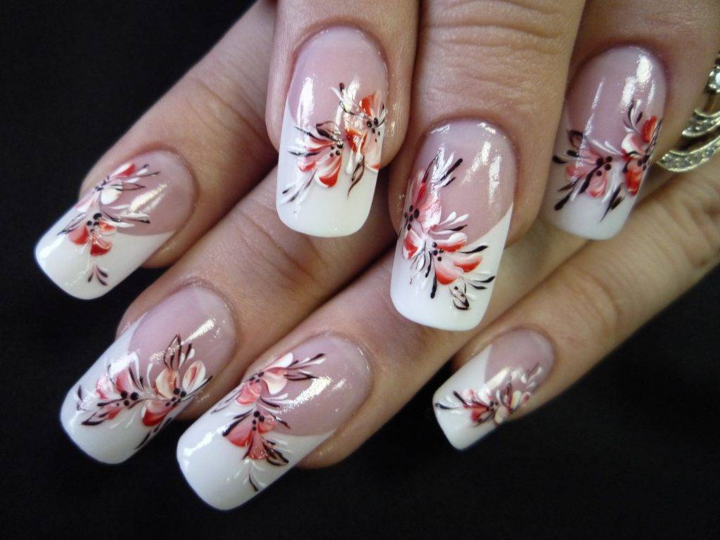 Флористические мотивы – если вы хотите привнести в свой образ немного романтики, то обратите особое внимание на цветочные рисунки. Этот модный дизайн подойдет под любой фасон платья, а это значит, что френч можно смело делать как деловой женщине, так и юной романтичной девушке