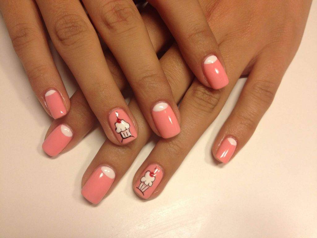 цвет коралл с черным маникюр френч полумесяцем с рисунком