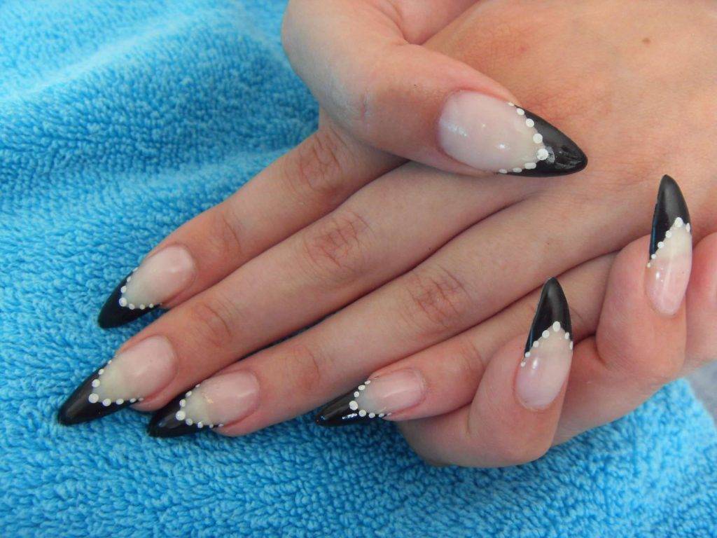 - точки – если классическая форма «улыбки» вам уже надоела, то присмотритесь к нейл-артам, где край ногтевой пластины выделен миниатюрными точками. Такой вариант выручит в том случае, если под рукой нет наклеек для френча и маникюрной кисти. Точки выполняются с помощью дотса.