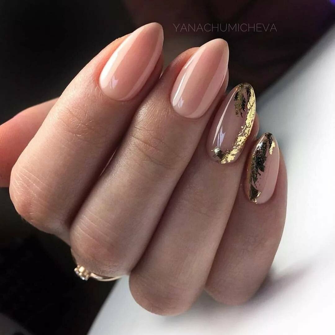 Модный в этом году дизайн ногтей в стиле минимализм и с ноткой абстракции. Такое оформление уместно и на цветной, и на нюдовой подложке, а любительницы натуральности и вовсе могут сделать его на прозрачный фон.