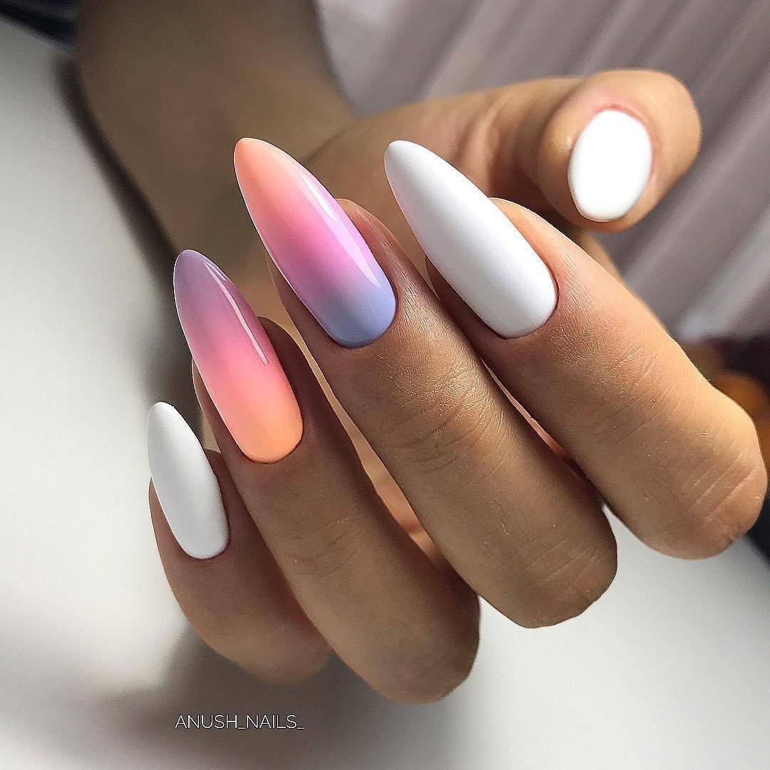 Для весеннего маникюра используйте технику разноцветный маникюр, маникюр “разные ручки”, 2-х цветный маникюр. Для маникюра используются мягкие яркие оттенки, которые еще нежнее смотрятся в матовом варианте. В тренде разноцветный маникюр, где на каждом ноготке используется отдельный цвет. Такой дизайн создается не только на основе личных предпочтений, но и с учетом цветового круга и гармоничности оттенков.