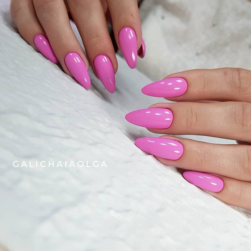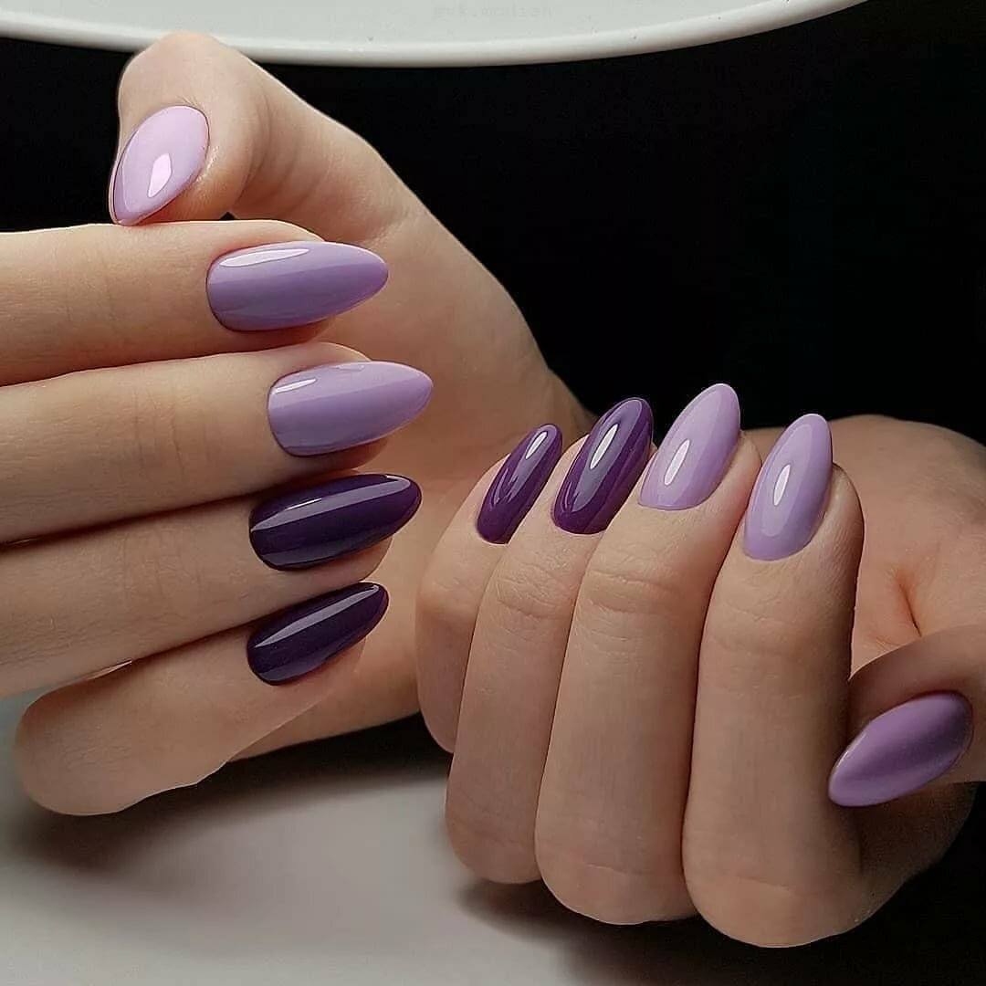 - Оригинальное решение для коротких ногтей, выполненное в розово-сиреневом контрасте.