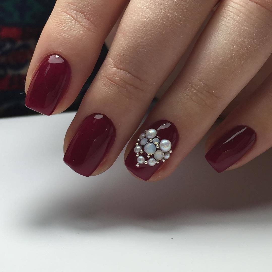 - Стильное решение в бордовых тонах с использованием стразов для глаз кота.