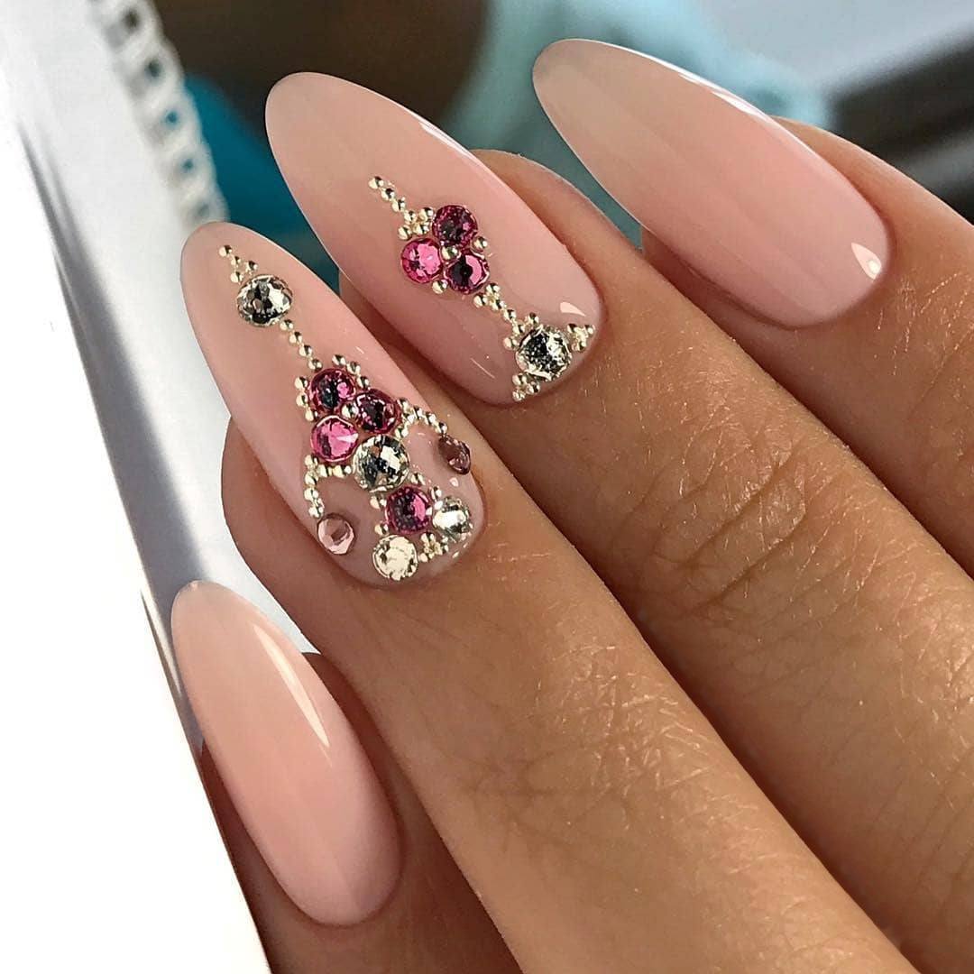 - Шикарный вариант «зефирного» маникюра в розовых тонах с наклейками и объемными лапками.