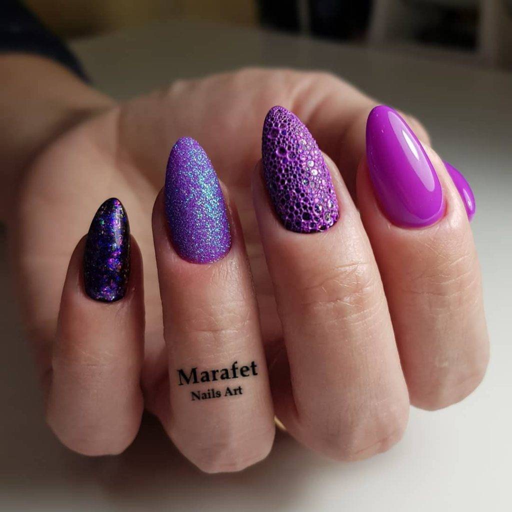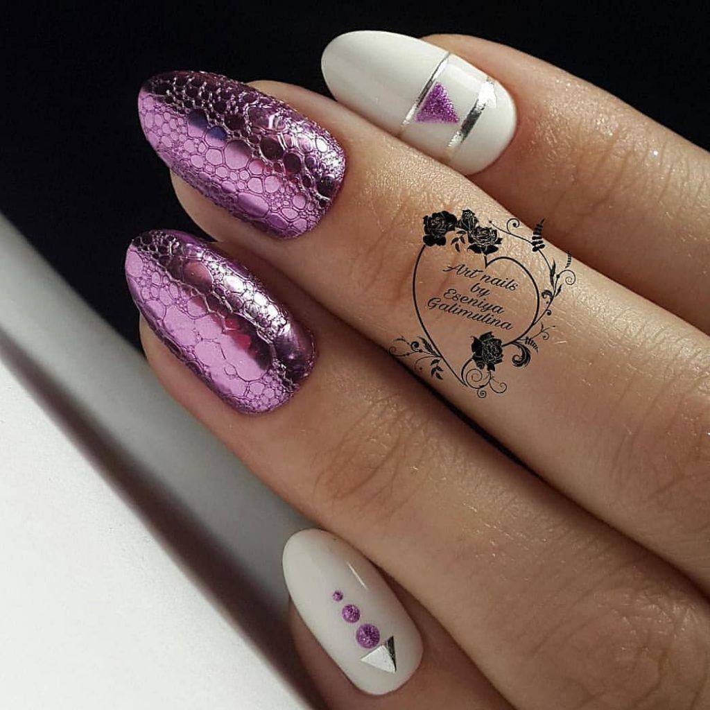 Еще недавно фольгу стали использовать в небольшом количестве в качестве акцента в маникюре. Но в 2020 году нейл-мастера предлагают шагнуть вперед и наносить много блеска. Достичь такого эффекта можно с помощью радужной, жатой или переводной фольги. Каждая из них смотрится по-разному. Поэтому лучше просмотрите идеи на фото прежде, чем отправиться к мастеру.