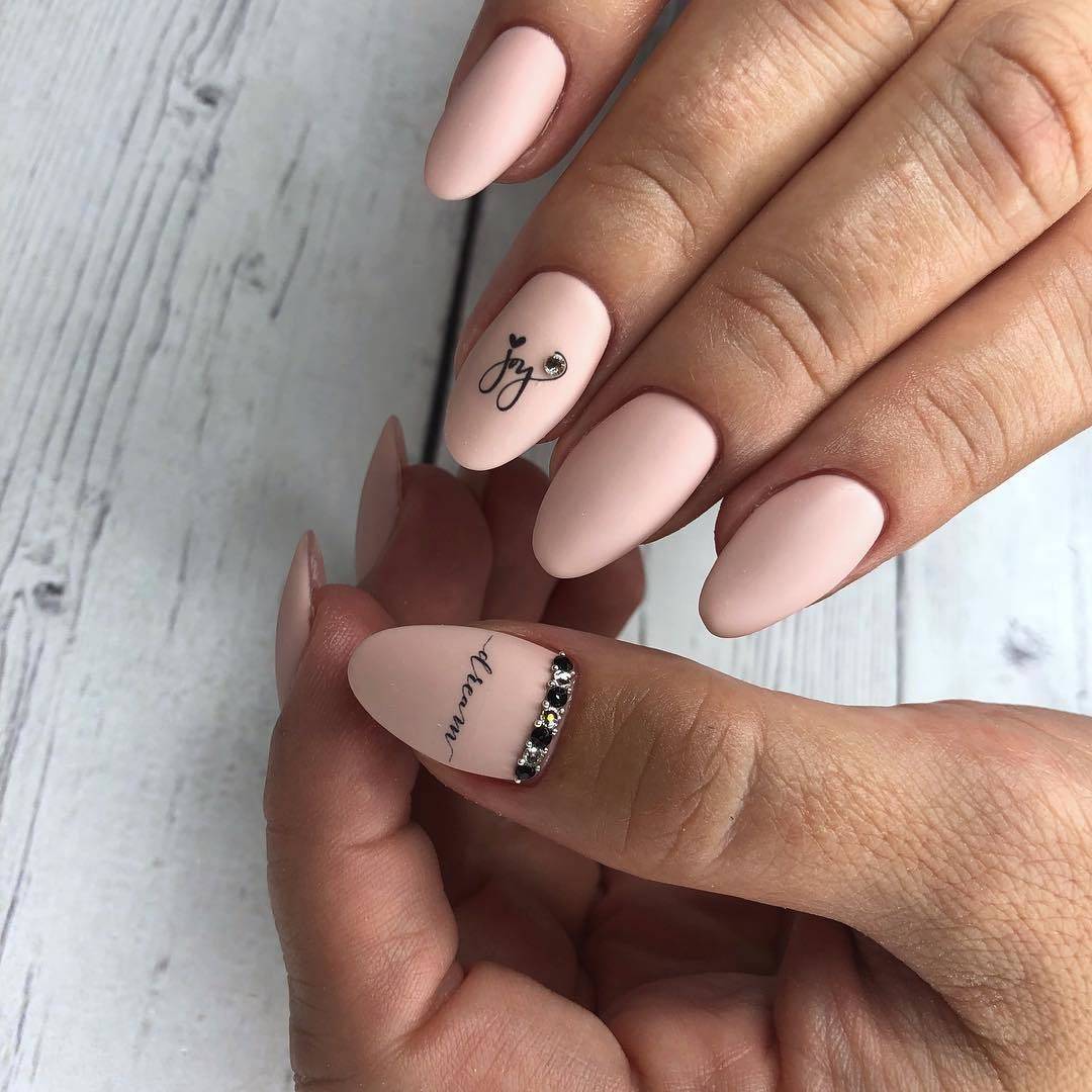 Незамысловатый, но при этом достаточно эффектный маникюр с надписями – настоящий хит 2020 года. Выбирайте шутливые фразы, девизы, признания в любви или цитаты из любимых книг, фильмов. Нанести их можно самостоятельно с помощью тонкой кисти или же используя слайдер-дизайн. Каждый из вариантов выглядит по-своему оригинально. Также отлично смотрится маникюр, выполненный в сочетании с другими видами нейл-арта, такими как градиент, абстракция или втирка.