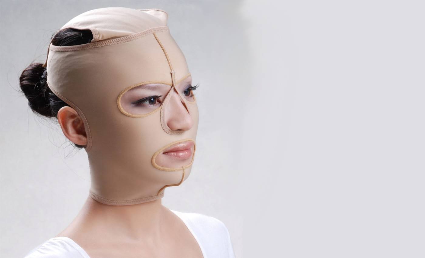 • Бандаж лицевой. Материал приспособления – спандекс, эластан. Они обладают замечательными свойствами подтягивать кожный покров и запускать процессы регенерации в тканях дермы, полностью гипоаллергенны – не вызывают побочных проявлений.