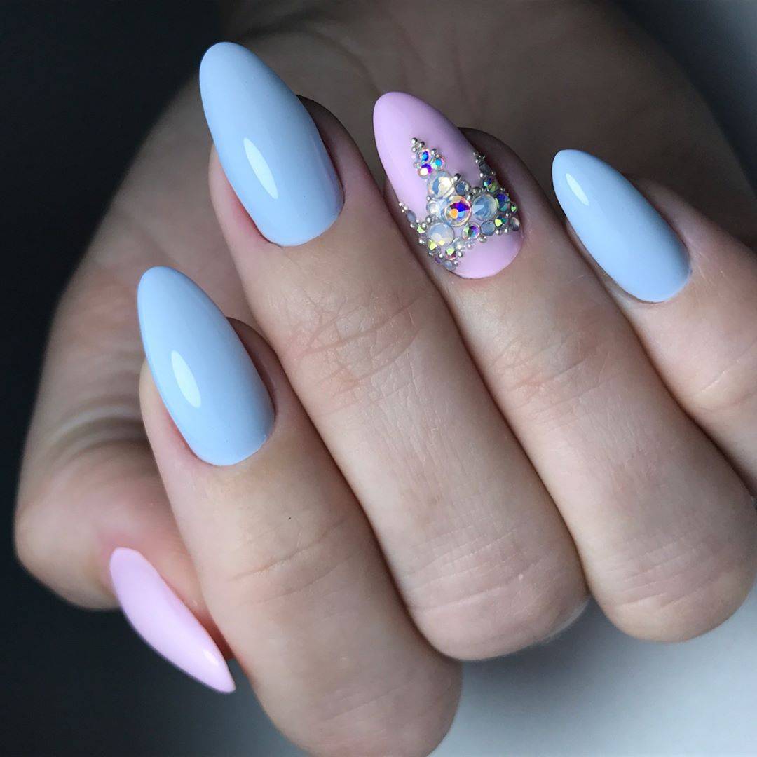 Помните о минимализме или акцентном дизайне. Очаровательная богатая композиция из кристалликов и бульонок, покрывающая хоть весь ноготок, очень нежно и изысканно будет смотреться с нюдовыми ноготками.