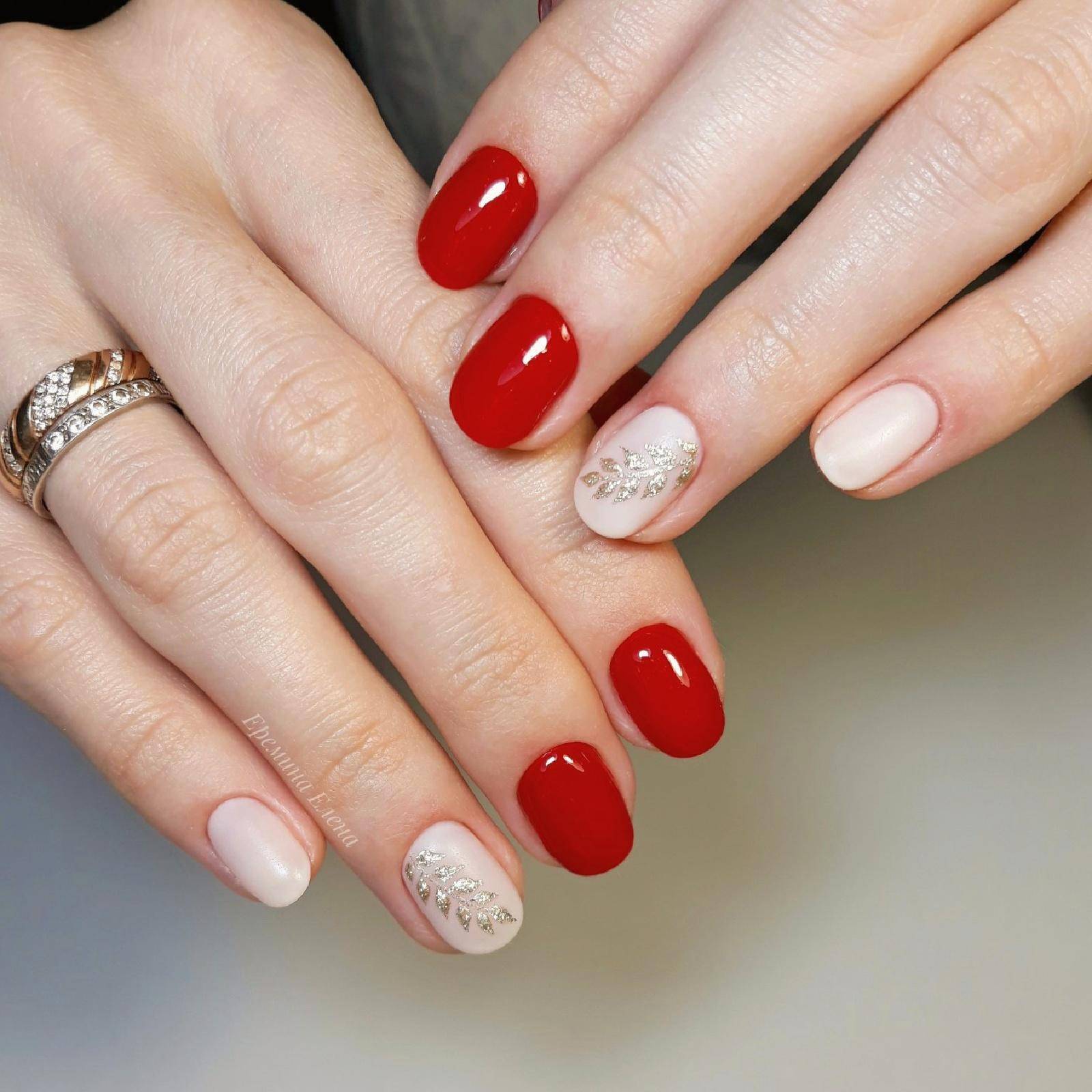 При этом можно выполнить совершенно любой дизайн, начиная от растяжки блесток на поверхности ноготка, заканчивая рисунками и узорами на нескольких ноготках. Классическая белая основа прекрасно сочетается с декором любого цвета. Очень часто в качестве дополнения используют другие тона, например, серый или оливковый. Ими покрывают всего один или несколько пальчиков. На длинных ногтях обворожительно и элегантно выглядит омбре, переходящее с серебряных блесков в белый цвет.