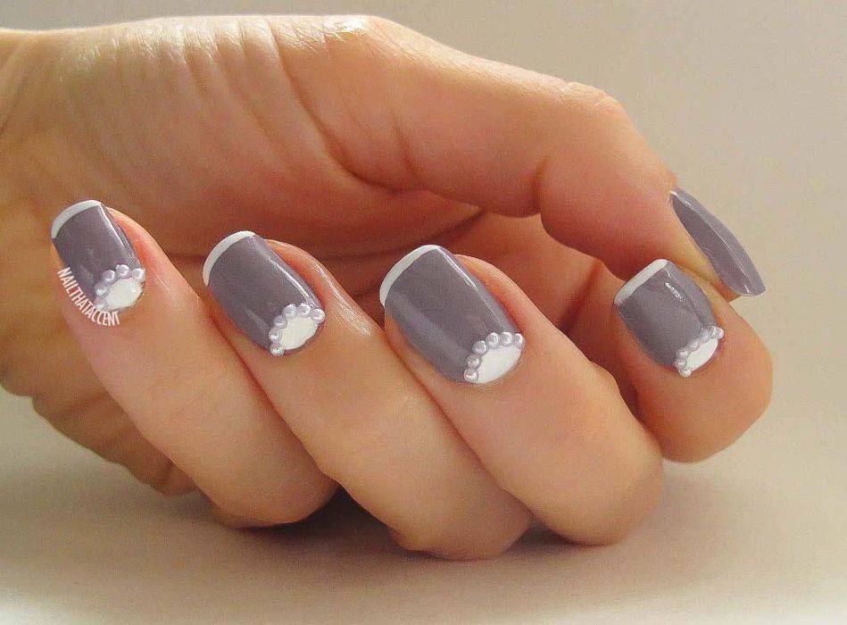 Этому классическому цветовому сочетанию больше подойдет и классический дизайн. Комбинацию серого и белого часто можно встретить во французском или лунном маникюре.