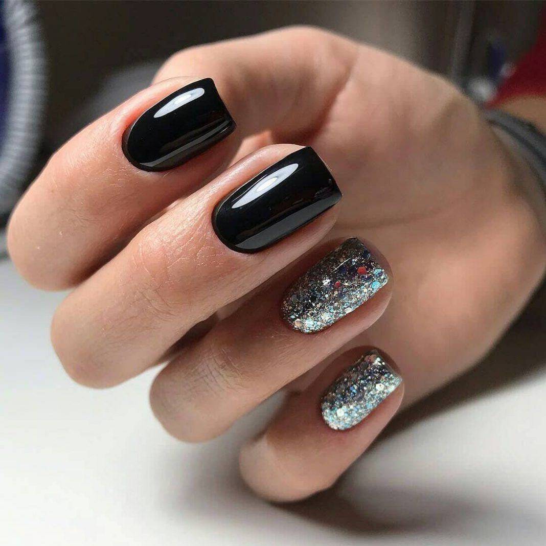 Сочетайте черный цвет с кремовым, бежевым, молочным и другими нейтральными тонами. На светлом фоне можно расположить узоры в черном цвете, например, кружево, сердечки, полоски. На коротких ногтях отлично смотрится сочетание черного и розового цвета. Такой тандем позволяет создать легкий повседневный дизайн с однотонным покрытием и акцентами в виде блесток.