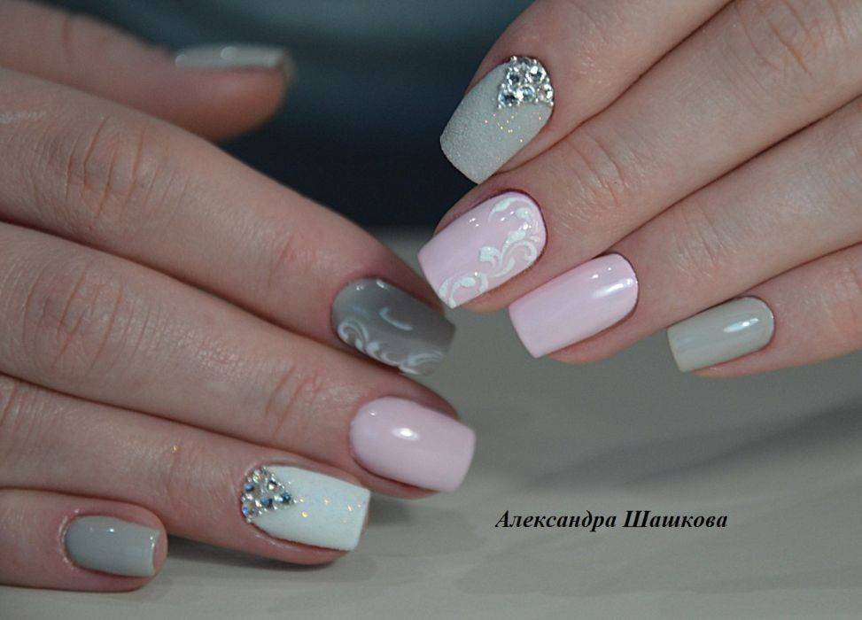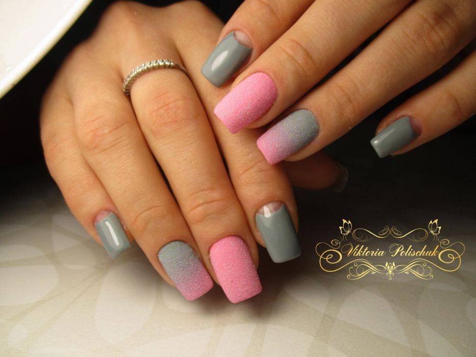 Многие стилисты применяют для создания модного нейл-арта серый с розовым дизайн ногтей. Он представлен такими вариациями оформления: