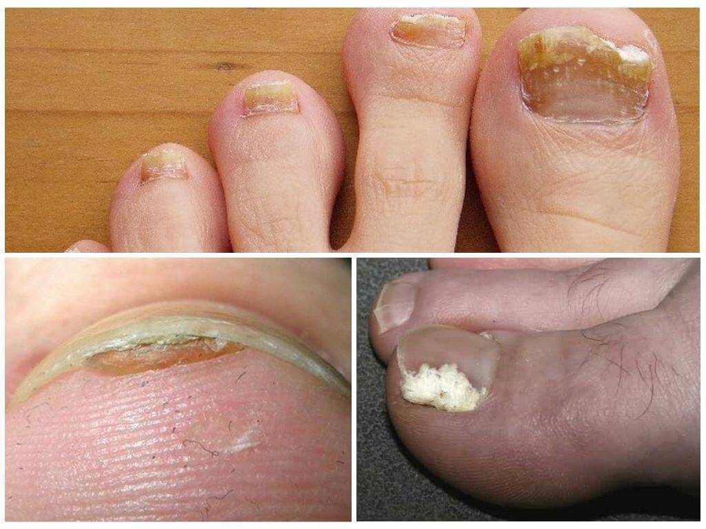 Длительное течение микоза стоп приводит к распространению зоны поражения и часто сочетается с поражением ногтевых пластин (онихомикоз). На начальном этапе часть ногтя меняет цвет, утолщается. Ноготь крошится под ногтевой пластиной разрастается рыхлый слой.
