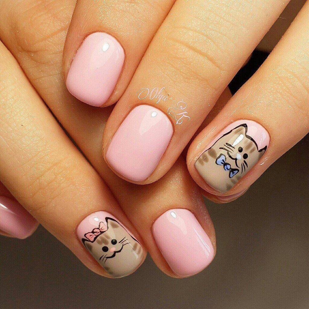 • Нежный и воздушный френч в пудровом тоне с игривыми котятами и отпечатками кошачьих лапок.