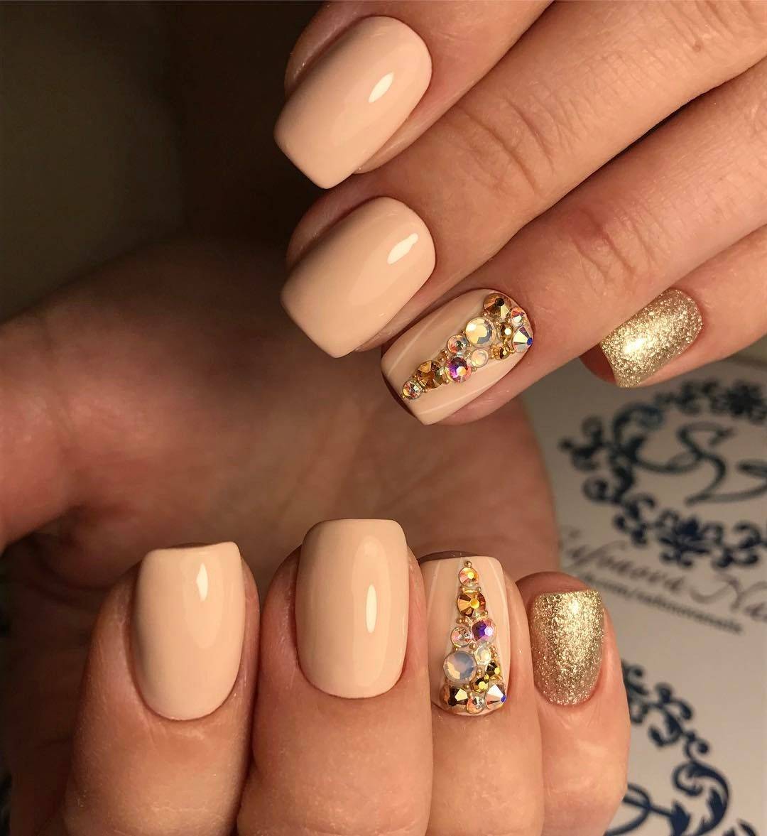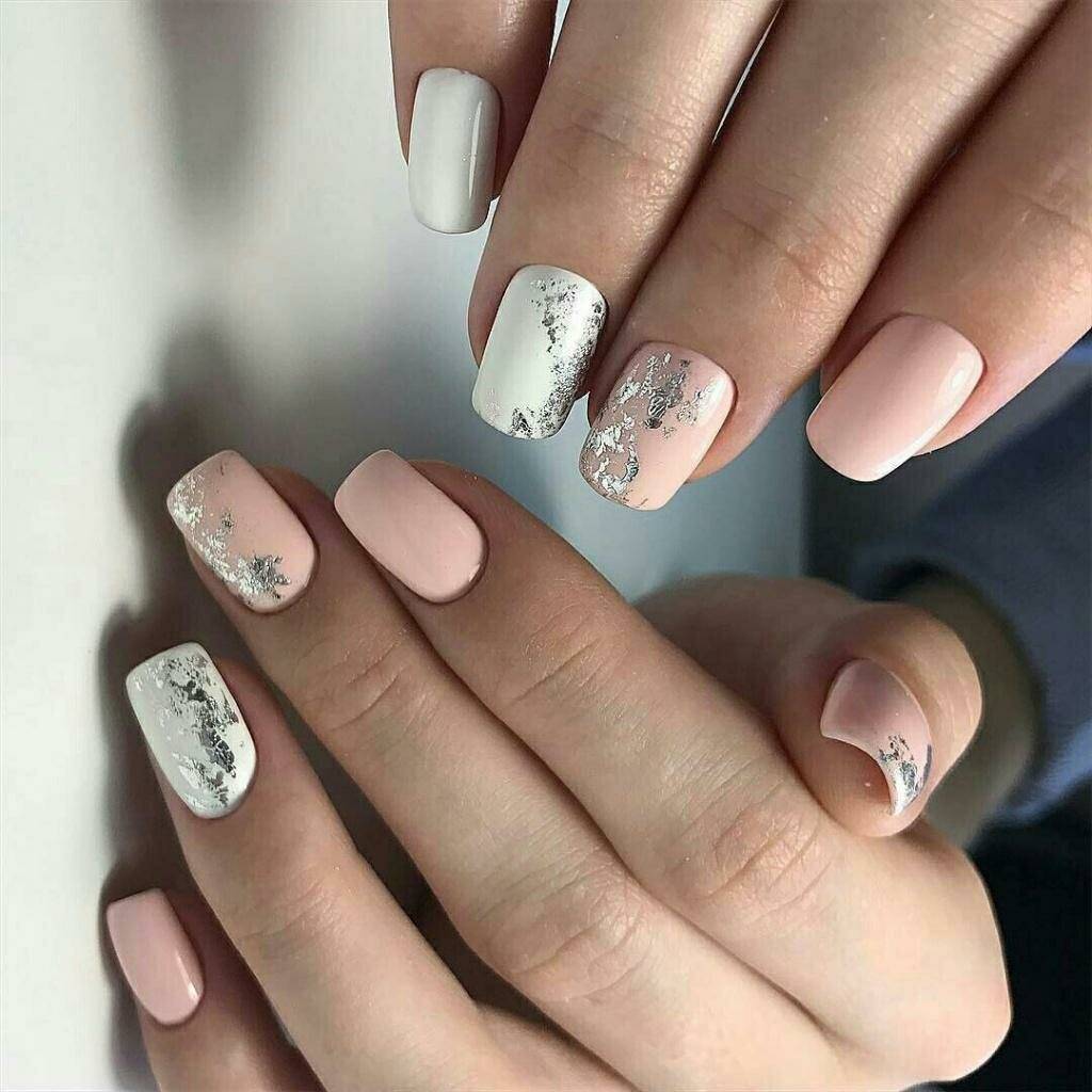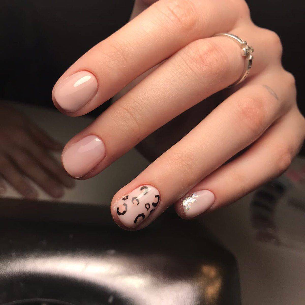 Оригинально выглядит узор, который поверх гель-лака покрыт акриловой пудрой или “сахарком”. Такое решение позволяет создать объемный и эффектный дизайн. Если вы хотите, чтобы маникюр смотрелся естественно и повседневно, то используйте в качестве декора изображение птиц, мордочек животных, миниатюрных точек с помощью дотса. Пример такого нейл-арта вы можете видеть на фото ниже.