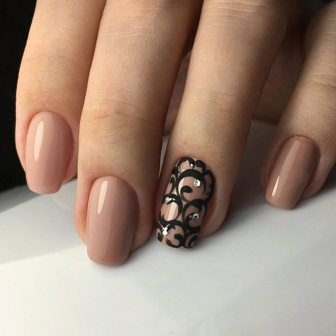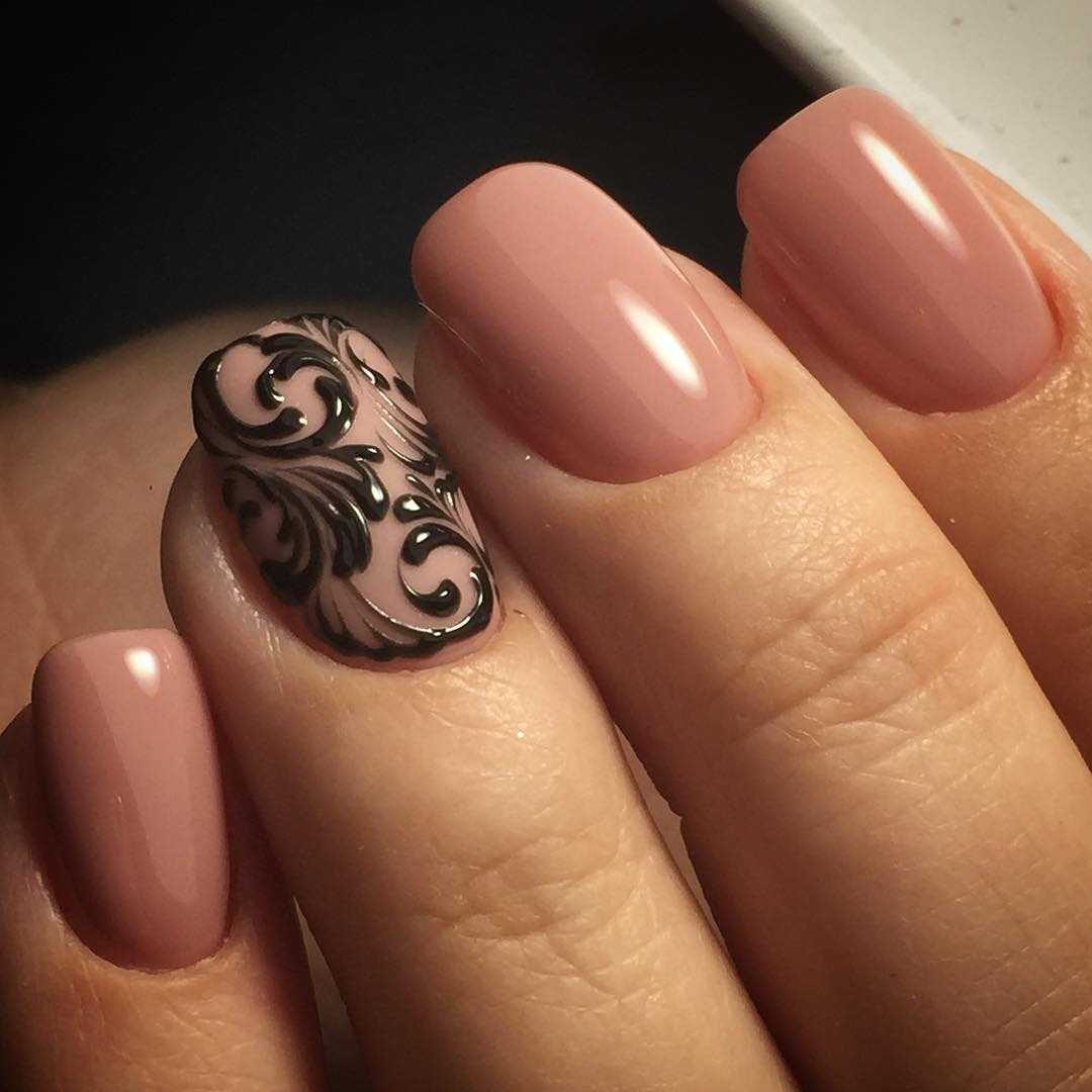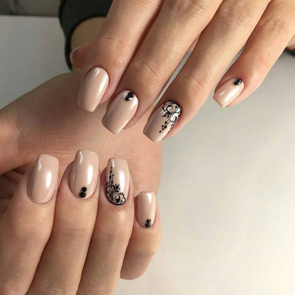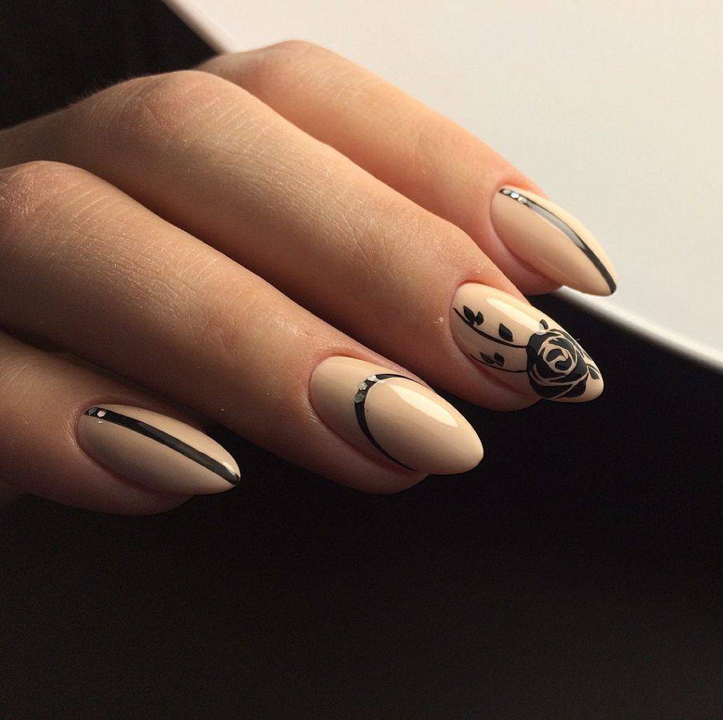 Черный узор на миндальном фоне смотрится гораздо заметнее и ярче, чем на любом другом. Именно поэтому к выбору дизайна нужно подходит особенно ответственно. На миндальном фоне стильно смотрятся: