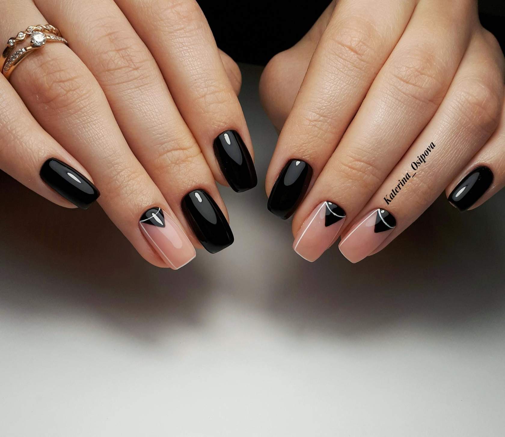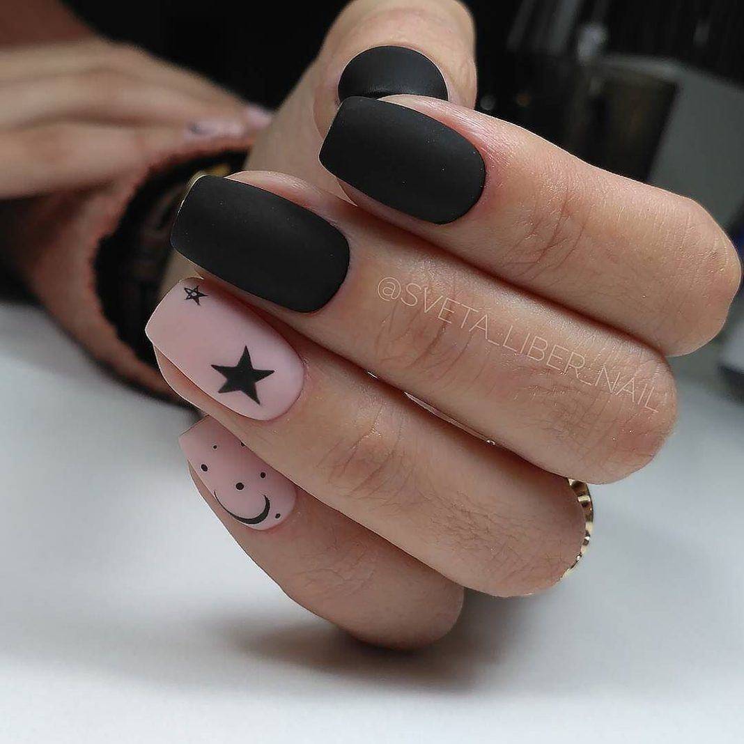 Черный гель-лак стал настолько обыденной частью нейл-дизайна, что он используется даже при выполнении френча. Черный цвет отлично гармонирует со всеми светлыми оттенками, начиная с белого и заканчивая едва заметными полупрозрачными тонами.