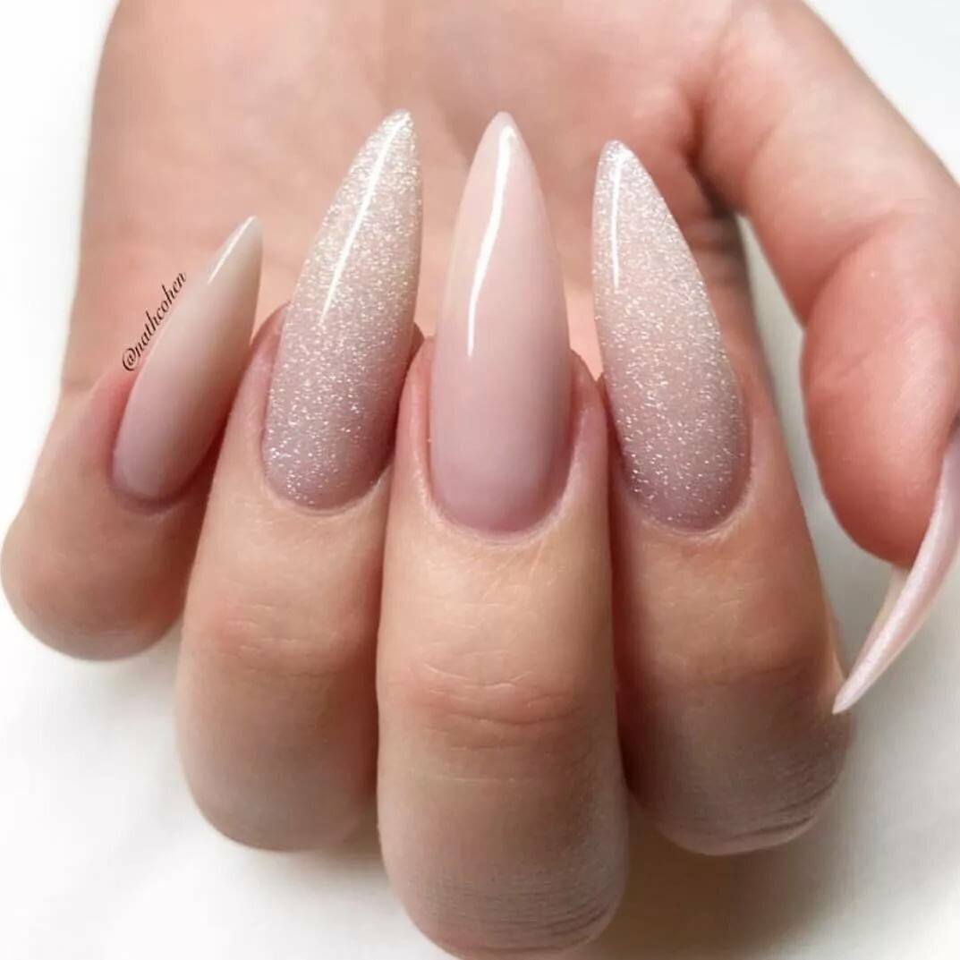 Свободный кончик выглядит слегка зауженным, визуально делая всю ногтевую пластину уже, похожей на любимый сладкоежками миндаль.