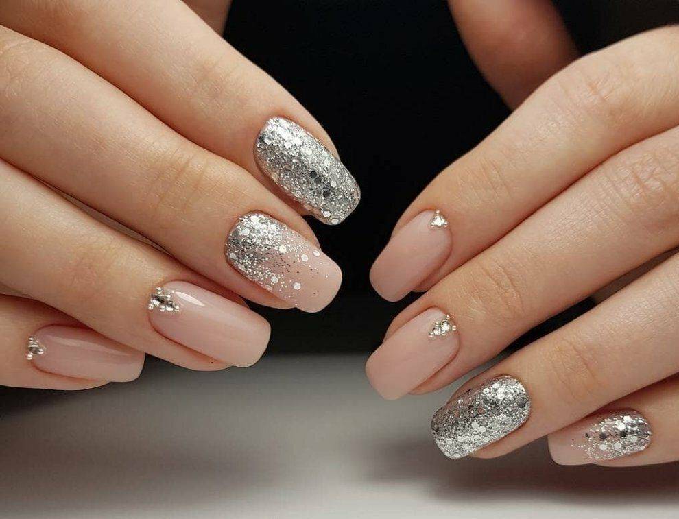 добавьте блеска. Глиттер или втирка — самый простой метод праздничного преображения. Зимний маникюр с ними выглядит торжественно и роскошно, а летний — слегка наивно, но по-отпускному свободно. Блестки не обязывают вас к определенному стилю в одежде, лишь задают настроение образу.