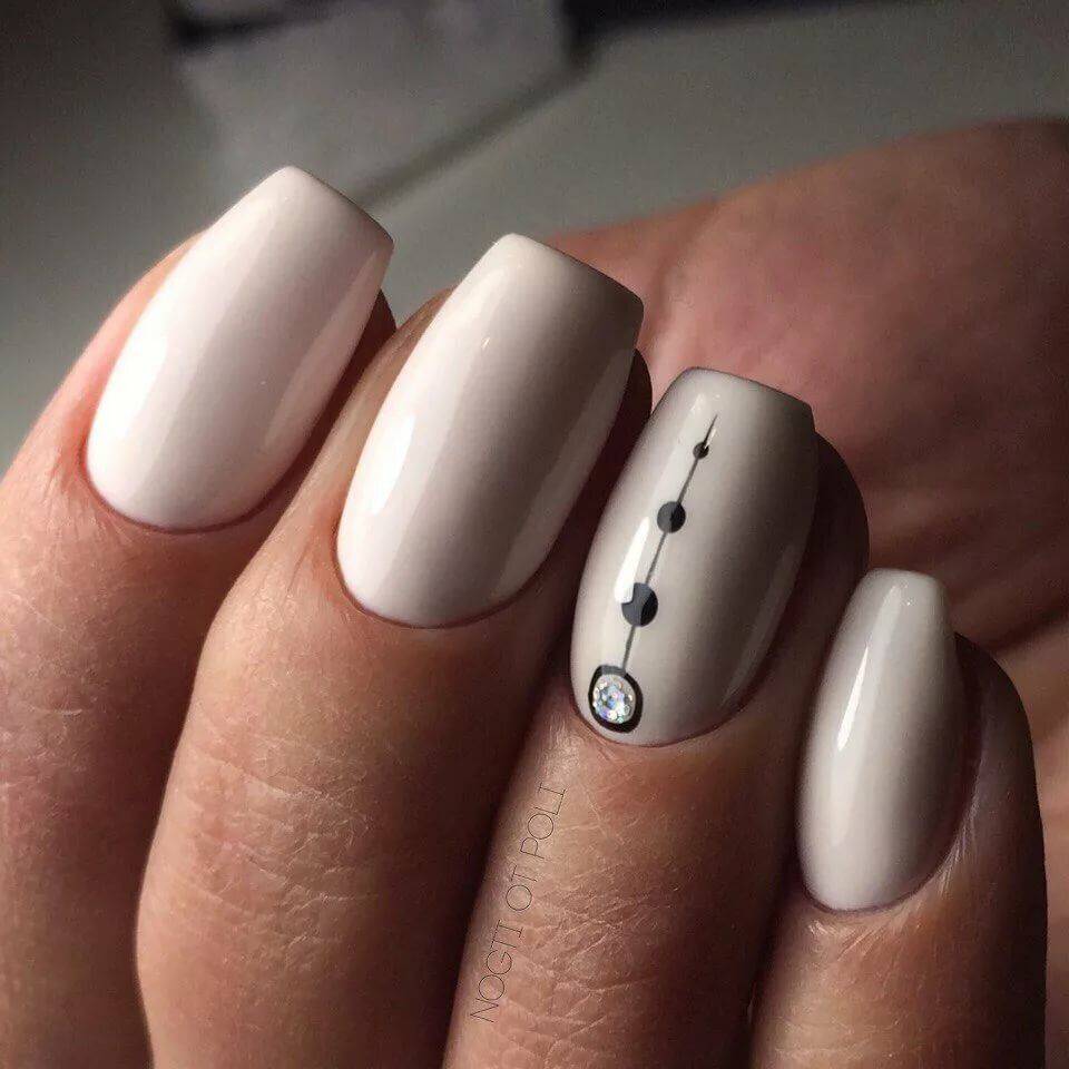 Такой дизайн выглядит нежно и женственно. Он подойдет для любительниц романтичного стиля в одежде. Круглые блики на ногтях делают руки визуально мягче, создавая уютный и стильный образ.