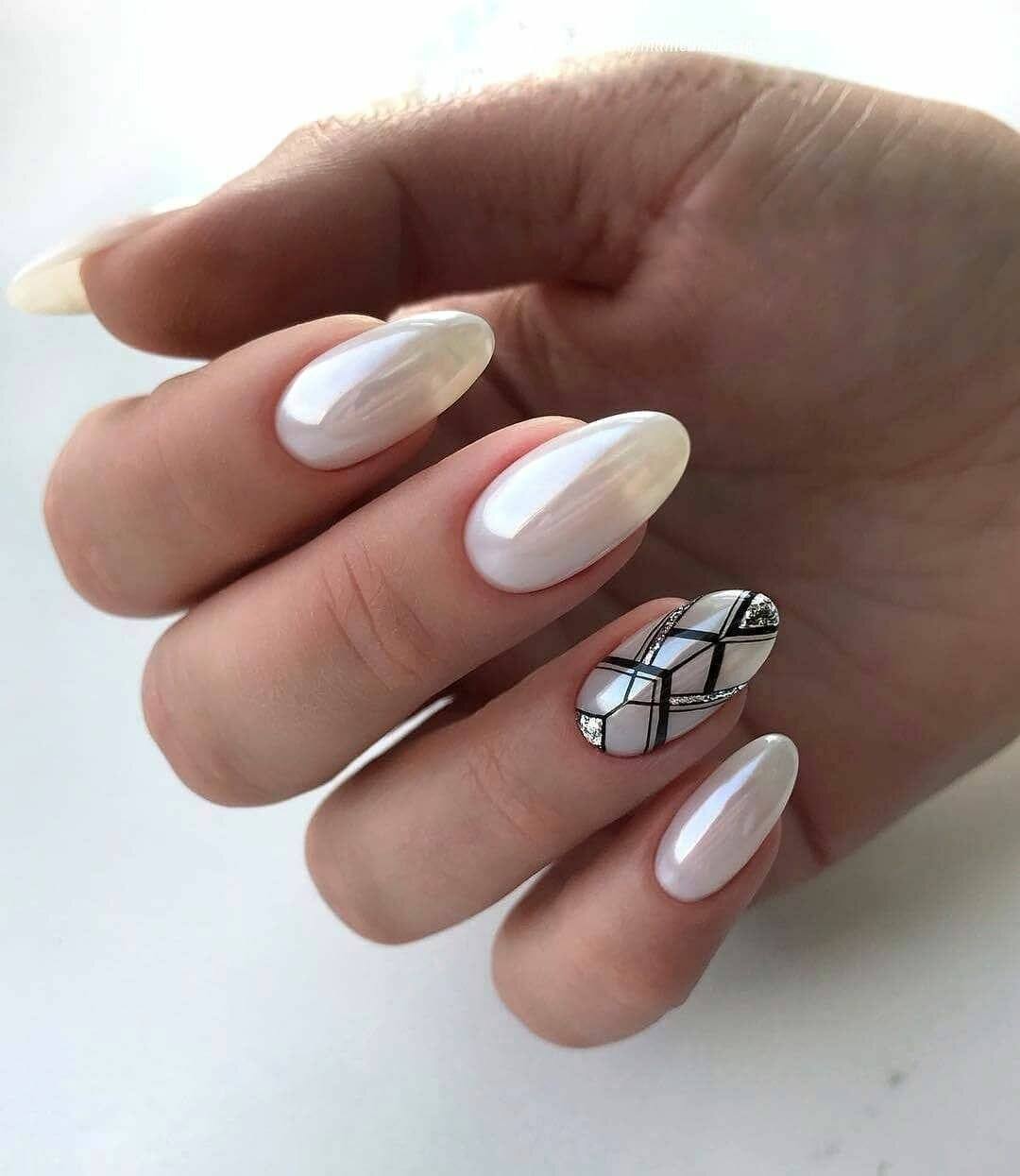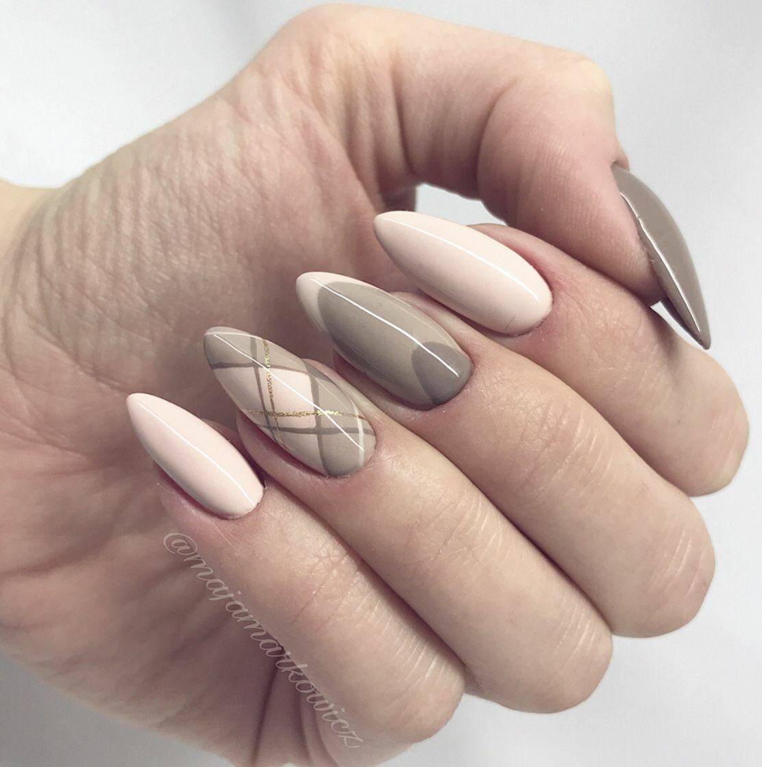 #3 Миндальный маникюр с геометрией