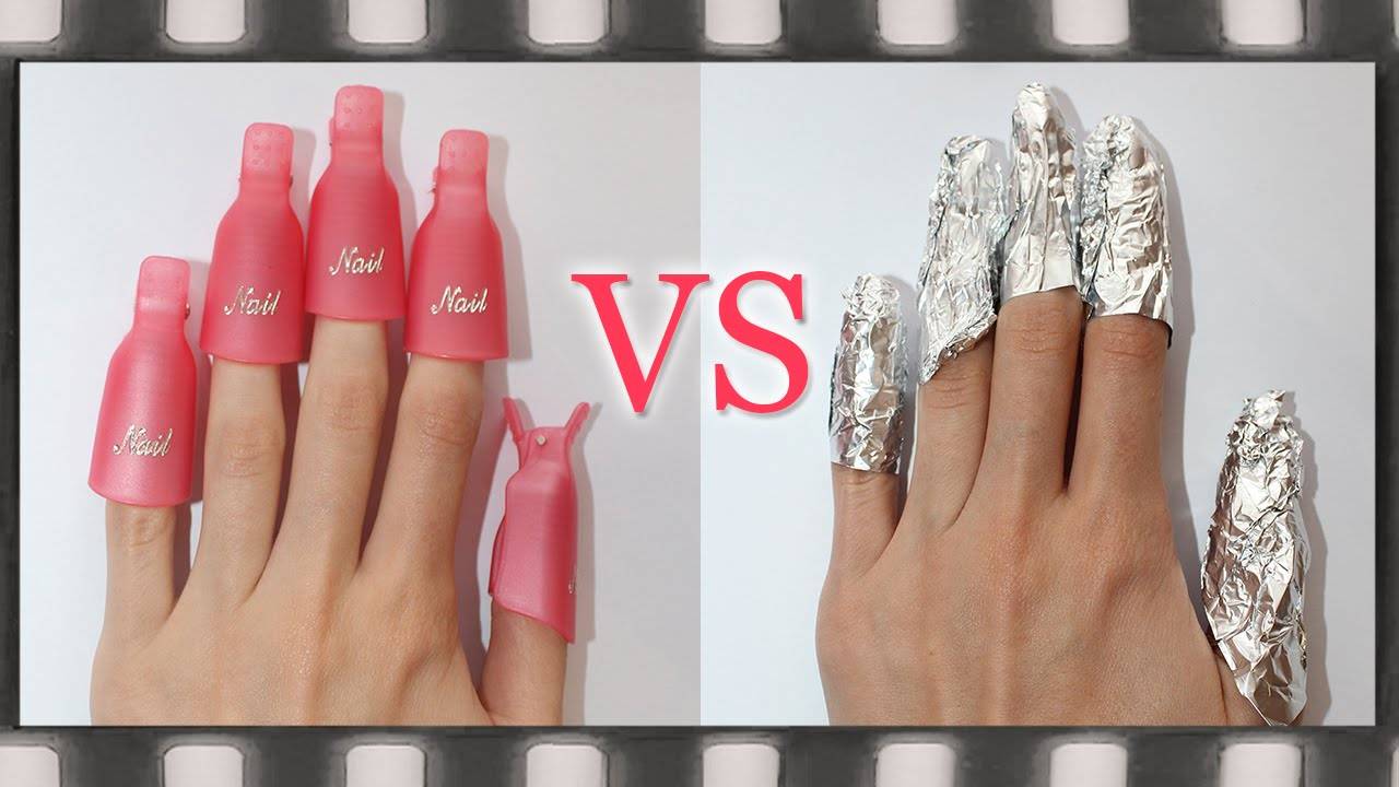 - Ремувер наносится на ватный диск, разрезанный на 4 части. Каждый ноготь покрывается смоченным кусочком, который достаточно крепко сверху фиксируют фольгой;
