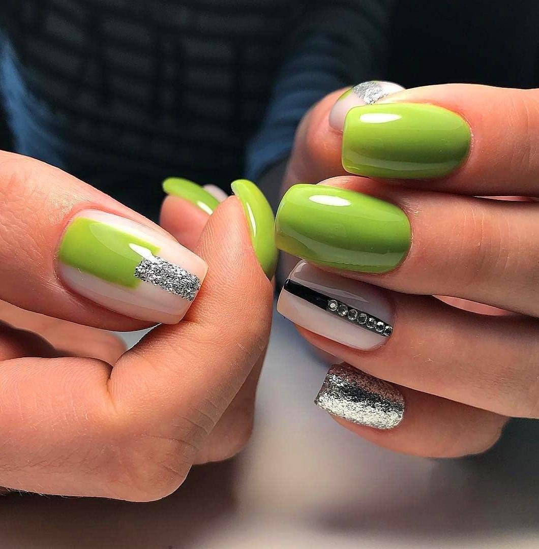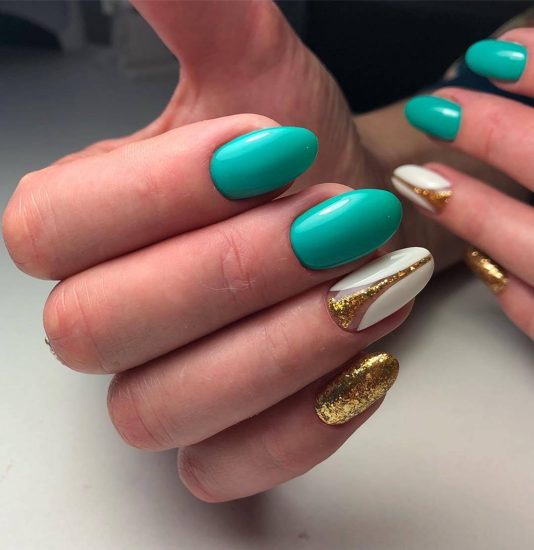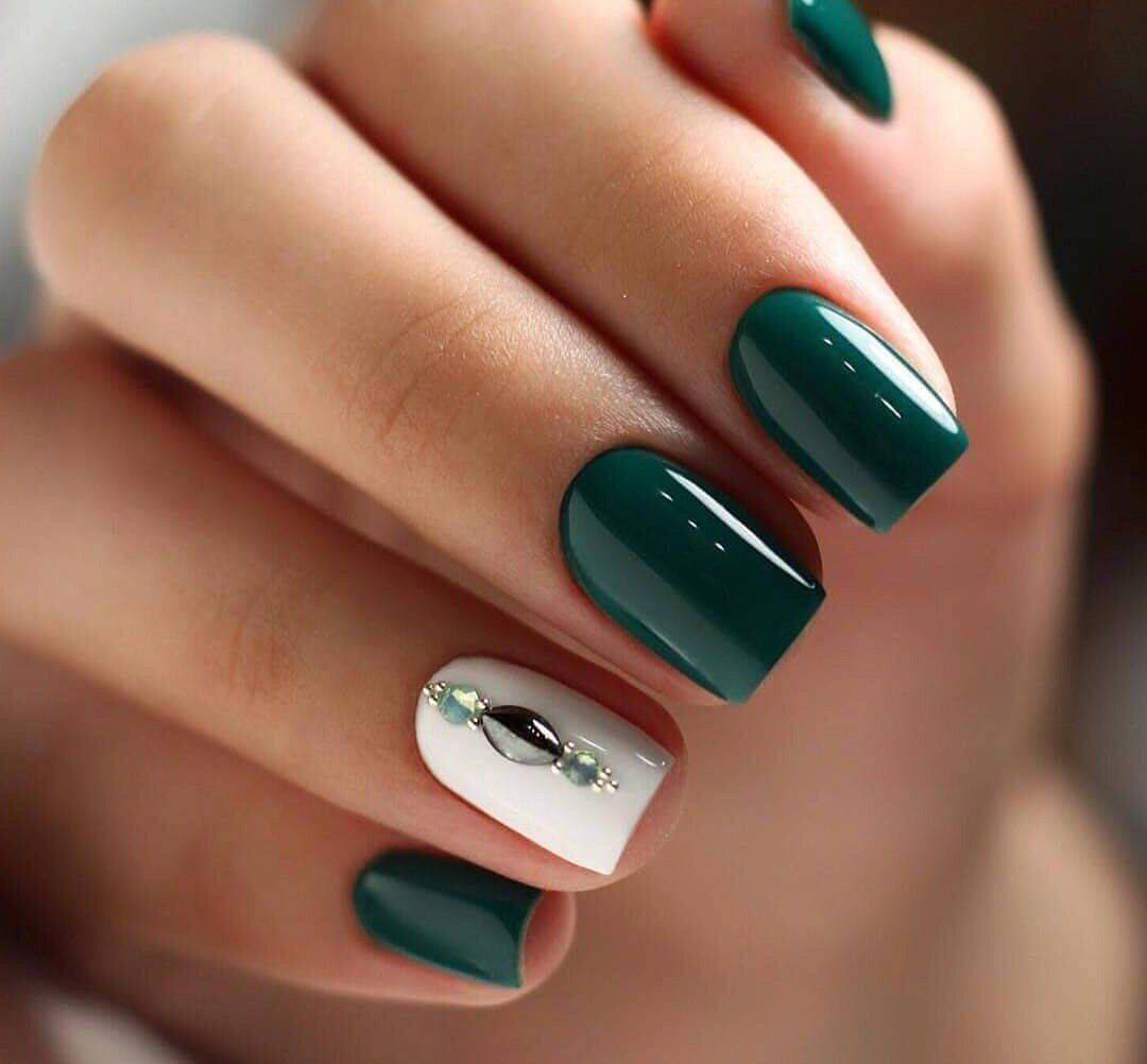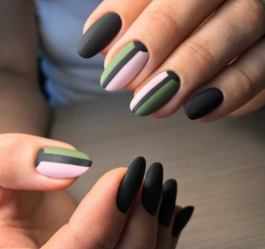 Очень сдержанное и благородное сочетание, которое не оставит равнодушной ни одну модницу. И особенно достойно оно смотрится в матовом исполнении. Дополните таким маникюром свой повседневный летний и осенний лук, и наслаждайтесь теми приятными эмоциями, которые он подарит. Кстати, оттенки зеленого здесь подойдут самые разные — от спокойного оливкового до насыщенного изумрудного.