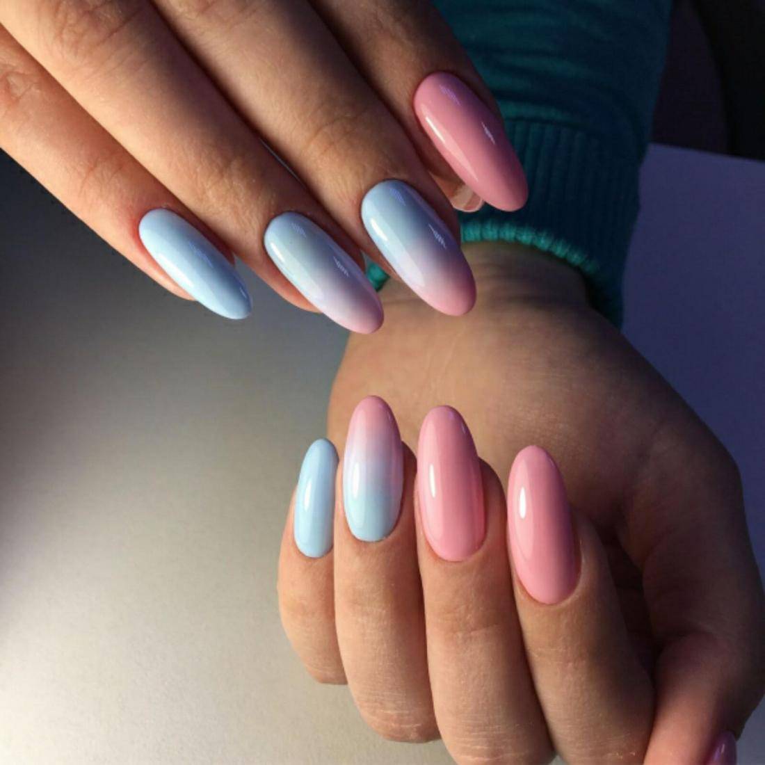 Если разные оттенки на каждом пальчике кажутся вам довольно скучными, то можно попробовать технику градиент и омбре. Плавный перекат двух цветов можно сделать как на одном ноготке, так и на всех пальчиках, растянув переход горизонтально. Как сделать двухцветный маникюр с плавным переходом можно прочитать в других наших статьях.