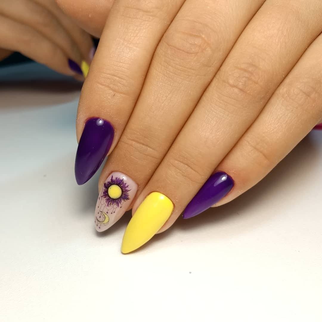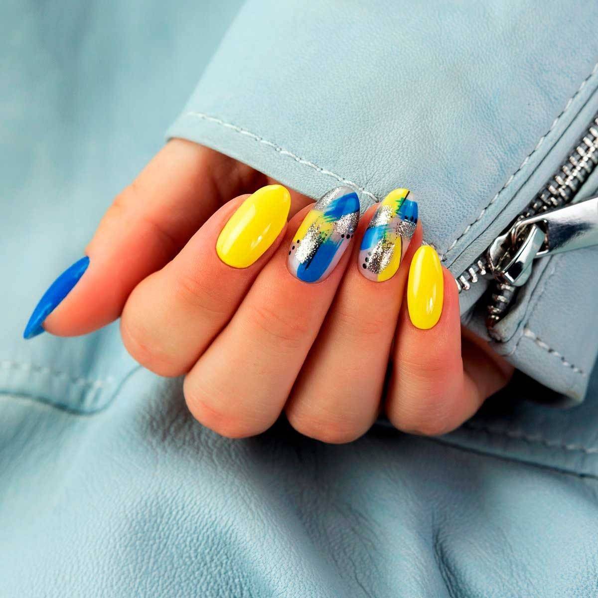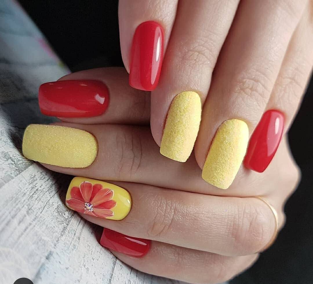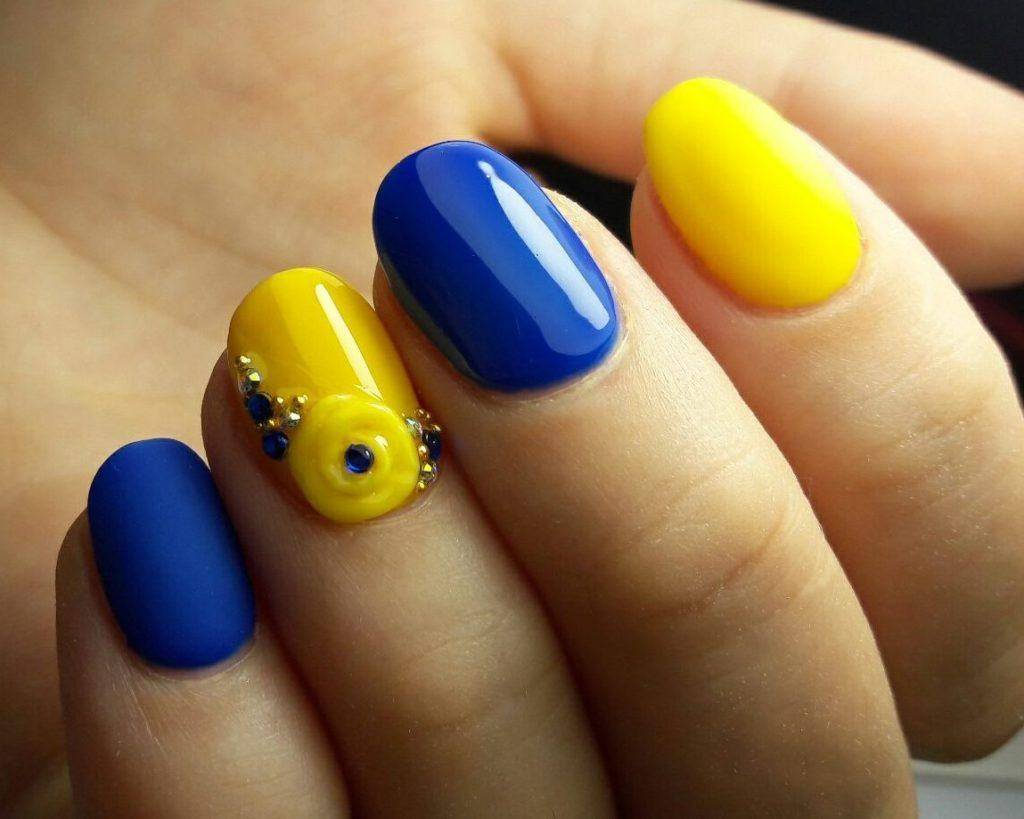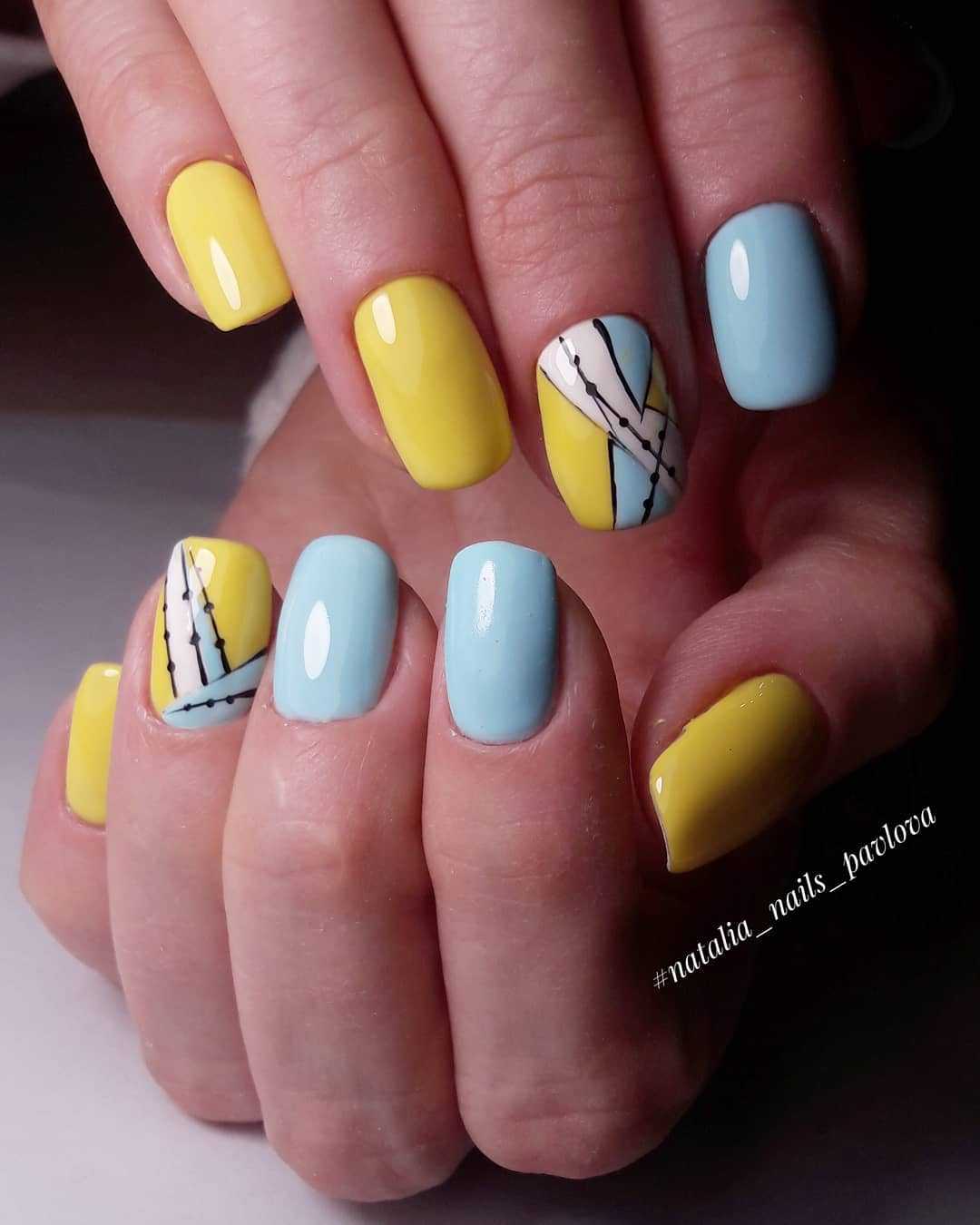 Это яркая и захватывающая комбинация, которая покорила сердца миллионов модниц. Смотрится маникюр в черно-желтой палитре достаточно контрастно, и именно в этом его преимущество. Идеально дополнят такой нейл-арт рисунки в минималистичном стиле, все та же геометрия, и блеск. Если же вы захотите немного разбавить это буйство красок, то добавьте в дизайн чуточку белого.