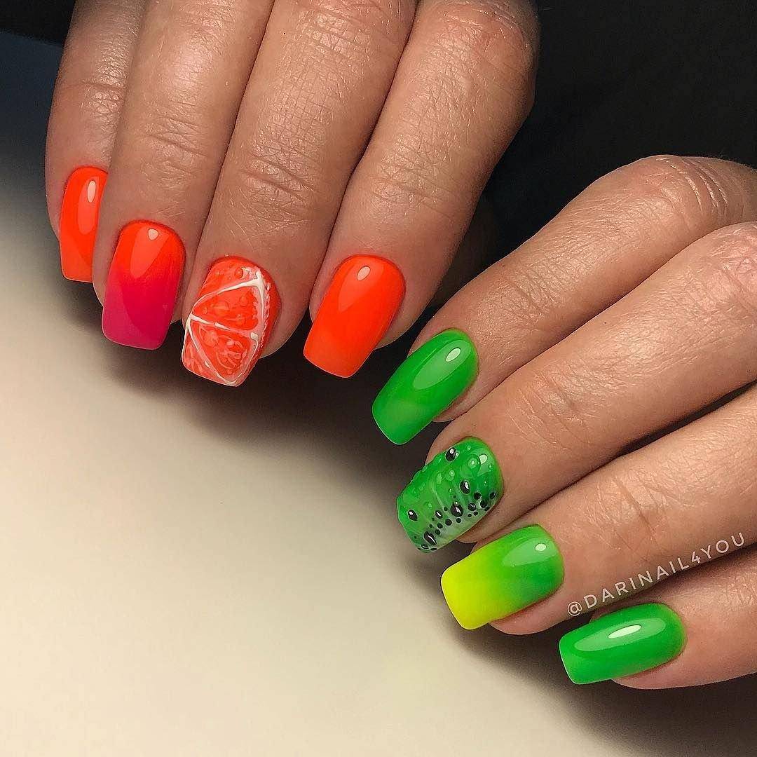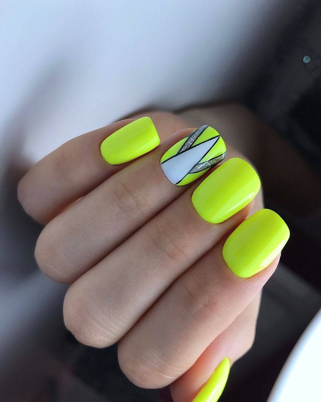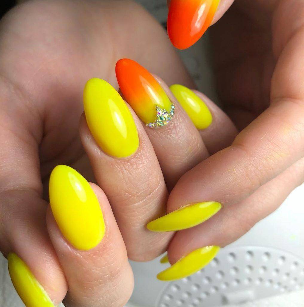 Сочный лаймовый, желтый и оранжевый цвет в роскошных дизайнах маникюра 2020
