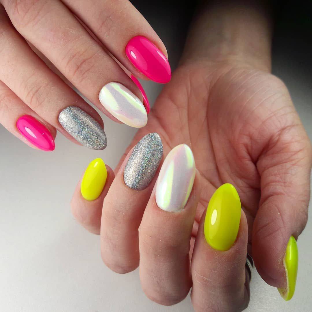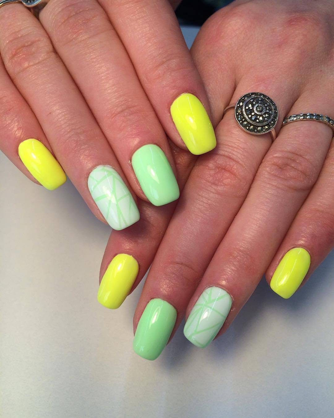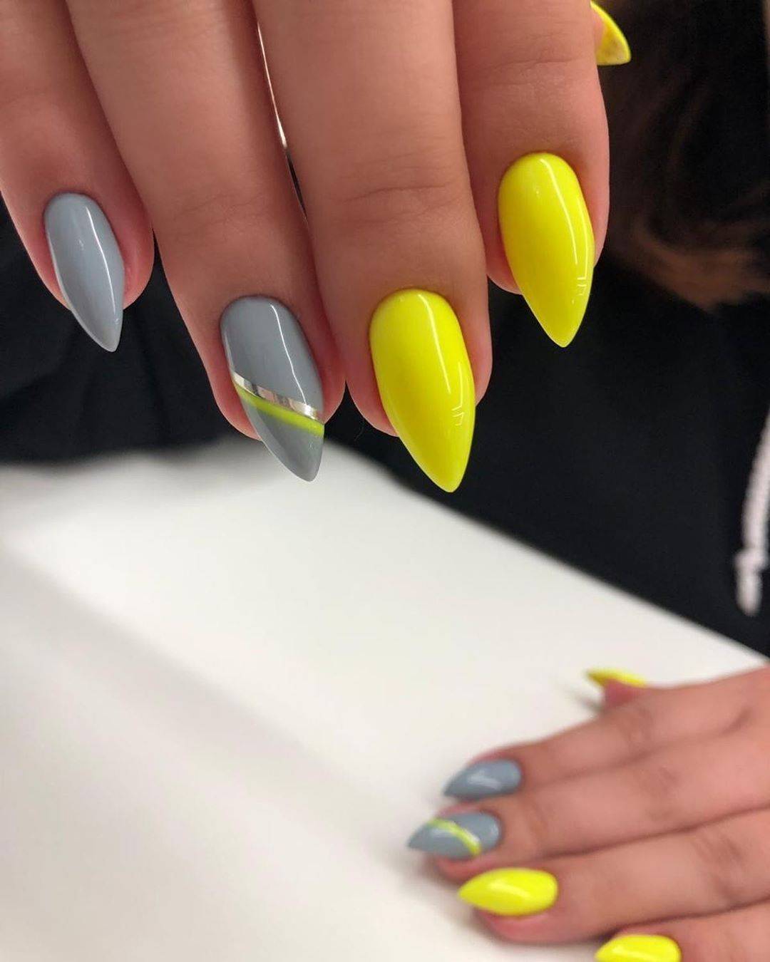 Сочный лаймовый, желтый и оранжевый цвет в роскошных дизайнах маникюра 2020