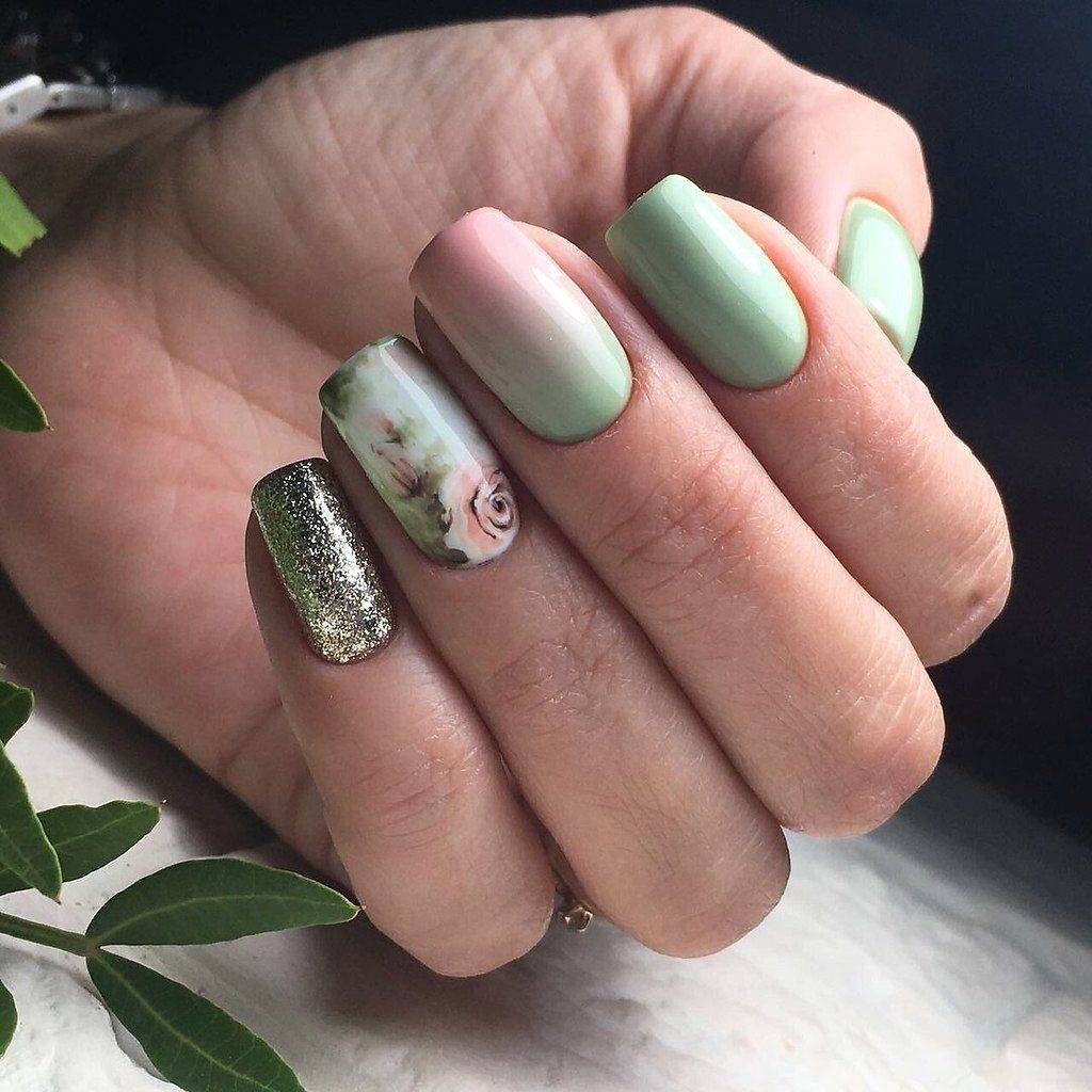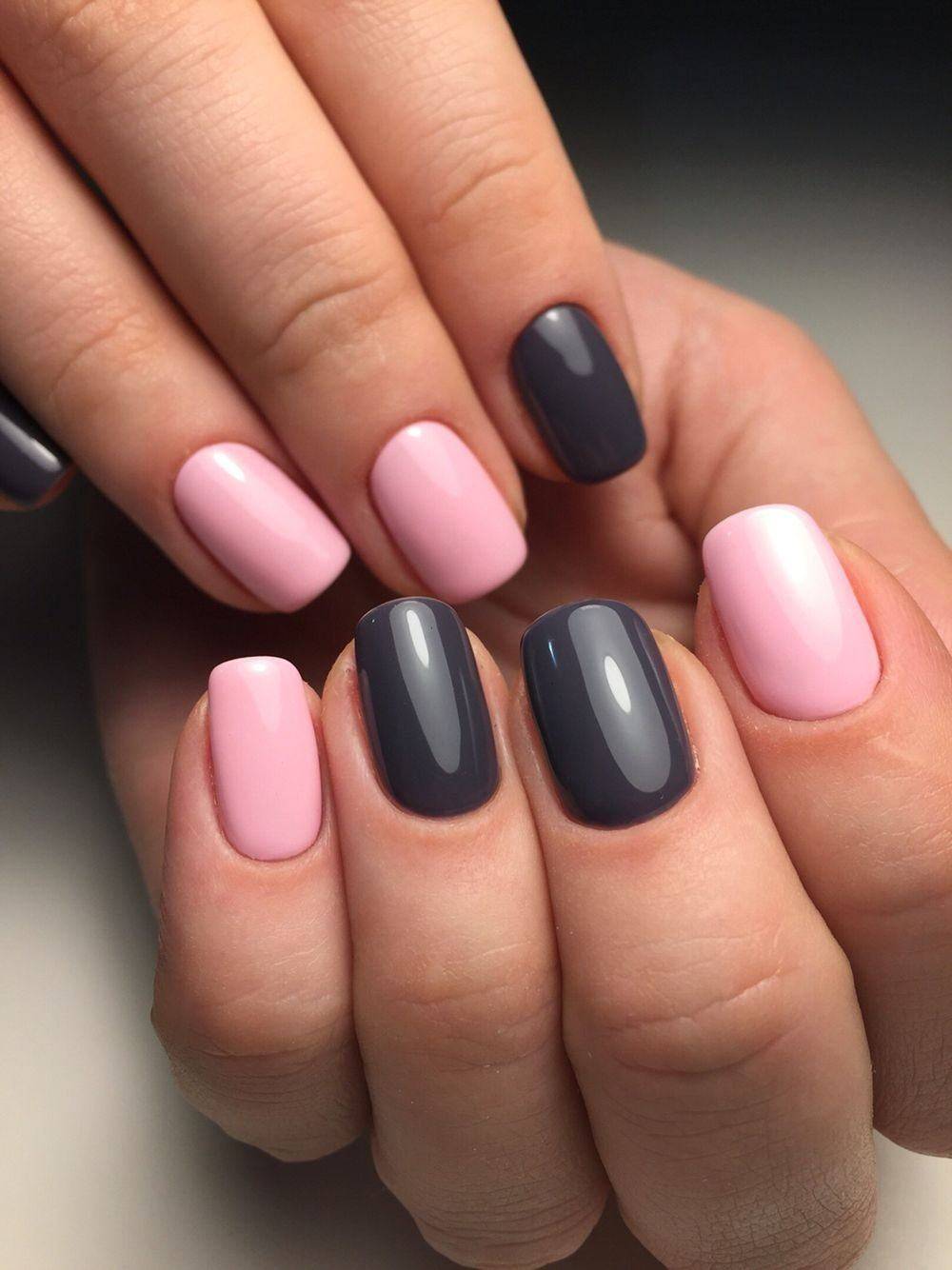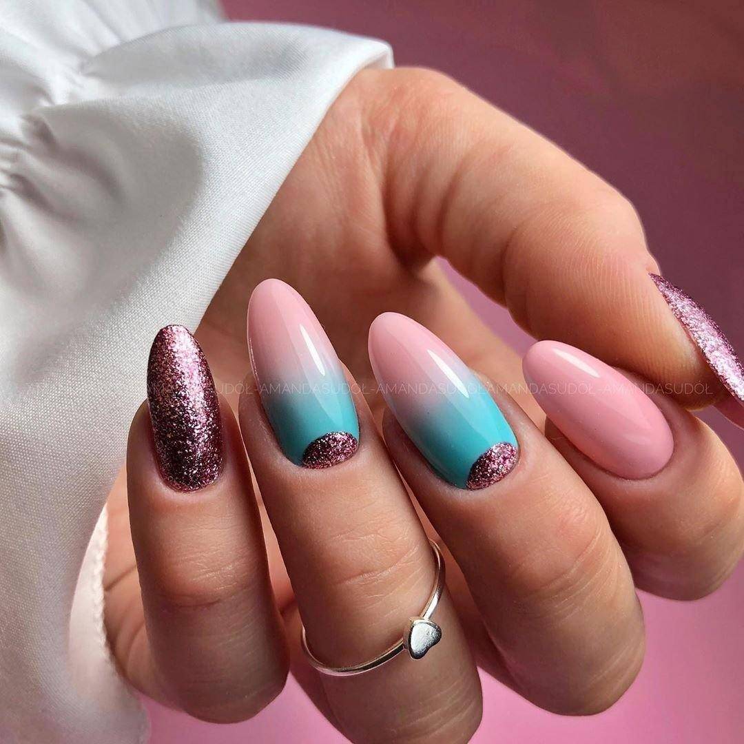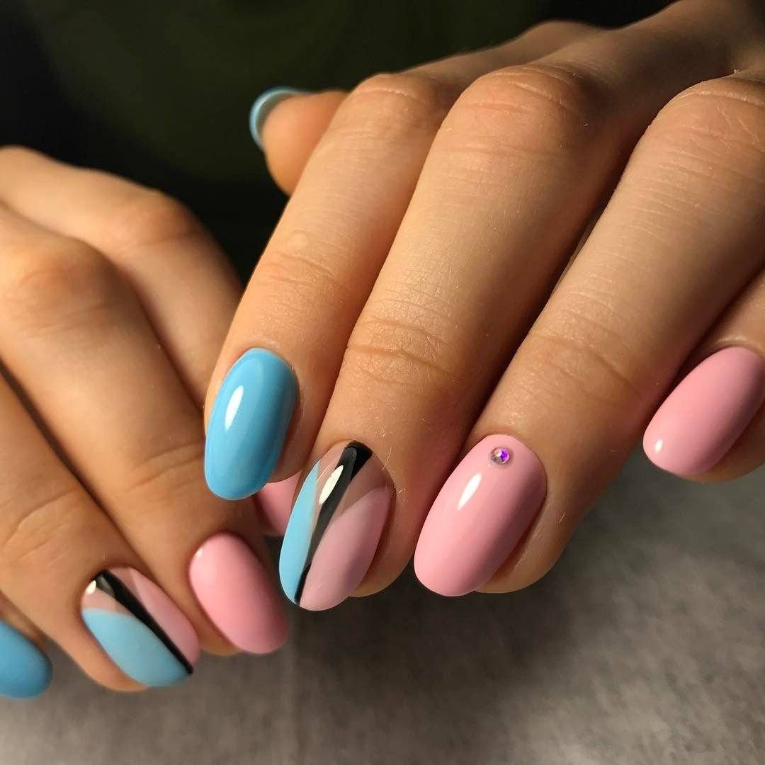 Это одно из самых трендовых сочетаний цветов в маникюре 2020 года. В результате нейл-арт получается очень нежным и одновременно веселым. Данный тандем идеально подойдет для теплого времени года. Причем комбинировать таким образом можно как пастельные оттенки, так и более яркие. И не забудьте дополнить этот маникюр дополнительными женственными элементами декора, например, рисунками или аккуратными наклейками в виде цветов.