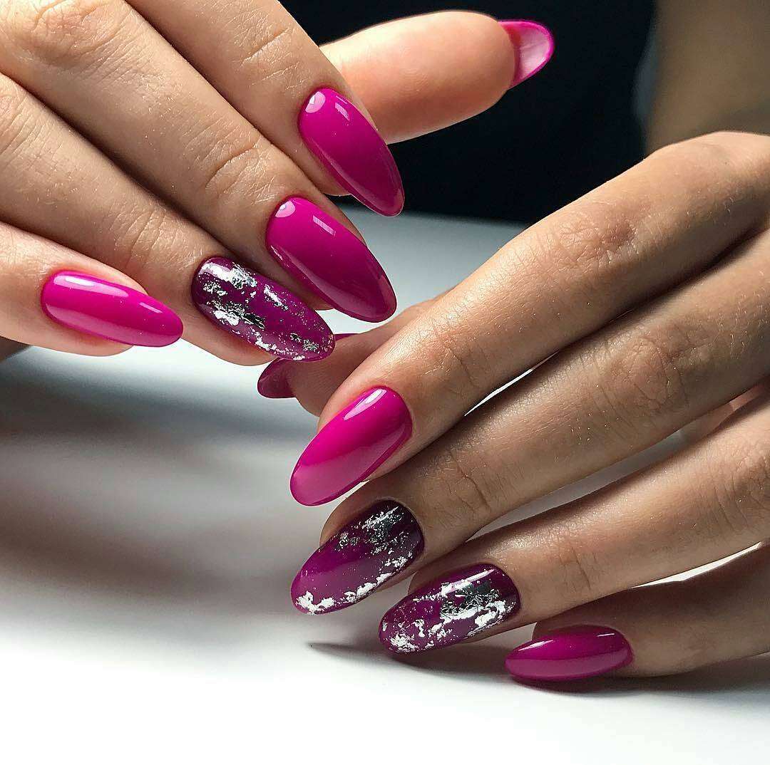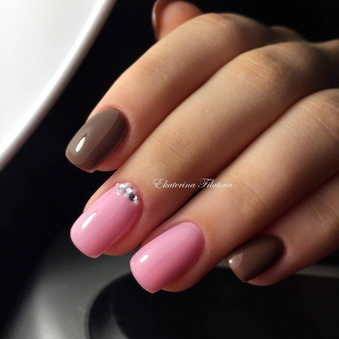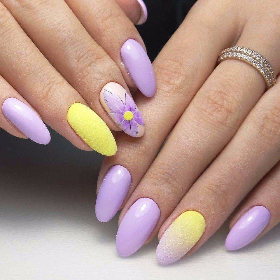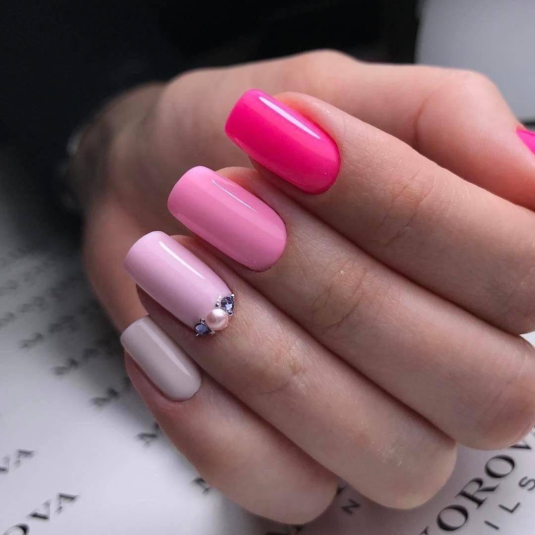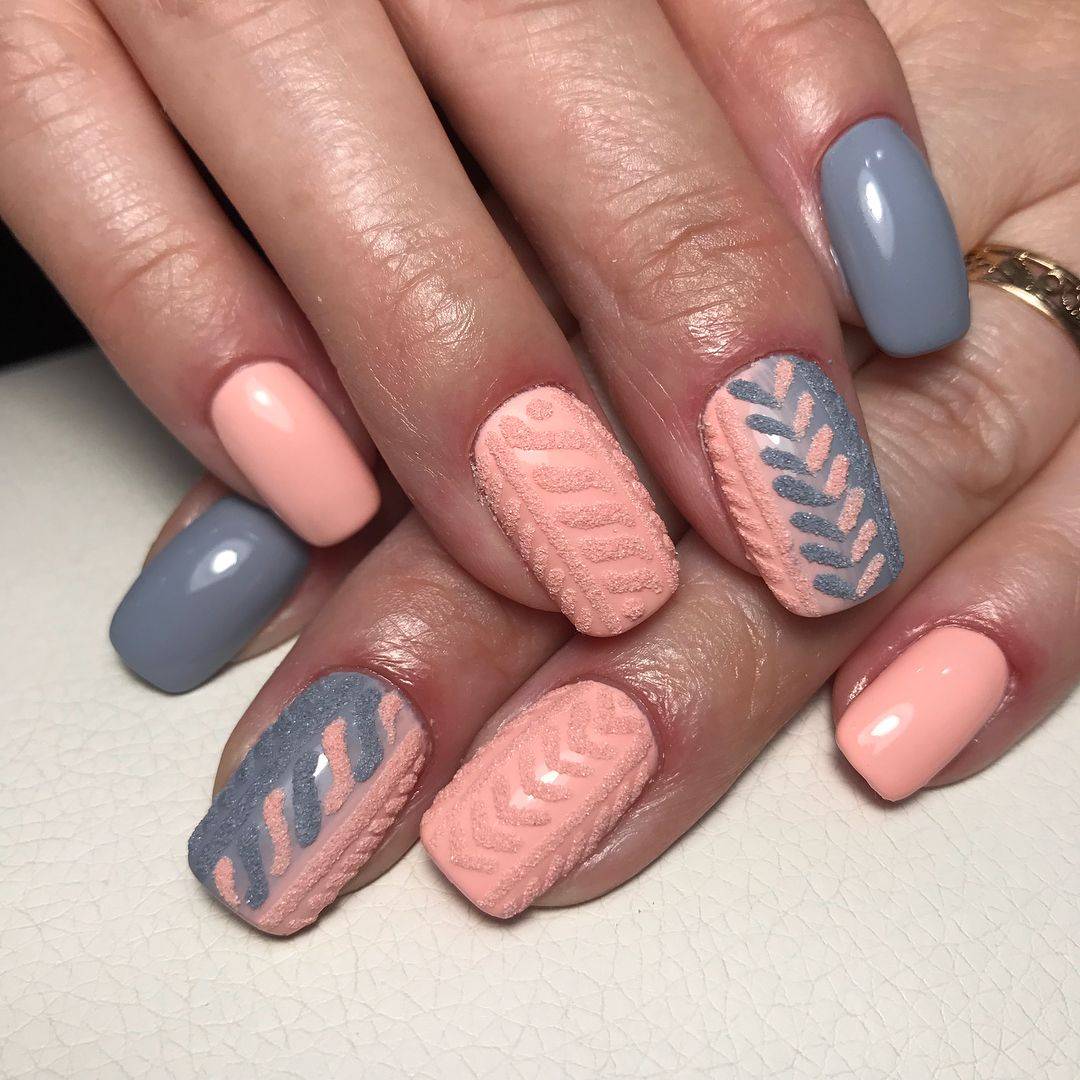 Это одно из самых трендовых сочетаний цветов в маникюре 2020 года. В результате нейл-арт получается очень нежным и одновременно веселым. Данный тандем идеально подойдет для теплого времени года. Причем комбинировать таким образом можно как пастельные оттенки, так и более яркие. И не забудьте дополнить этот маникюр дополнительными женственными элементами декора, например, рисунками или аккуратными наклейками в виде цветов.