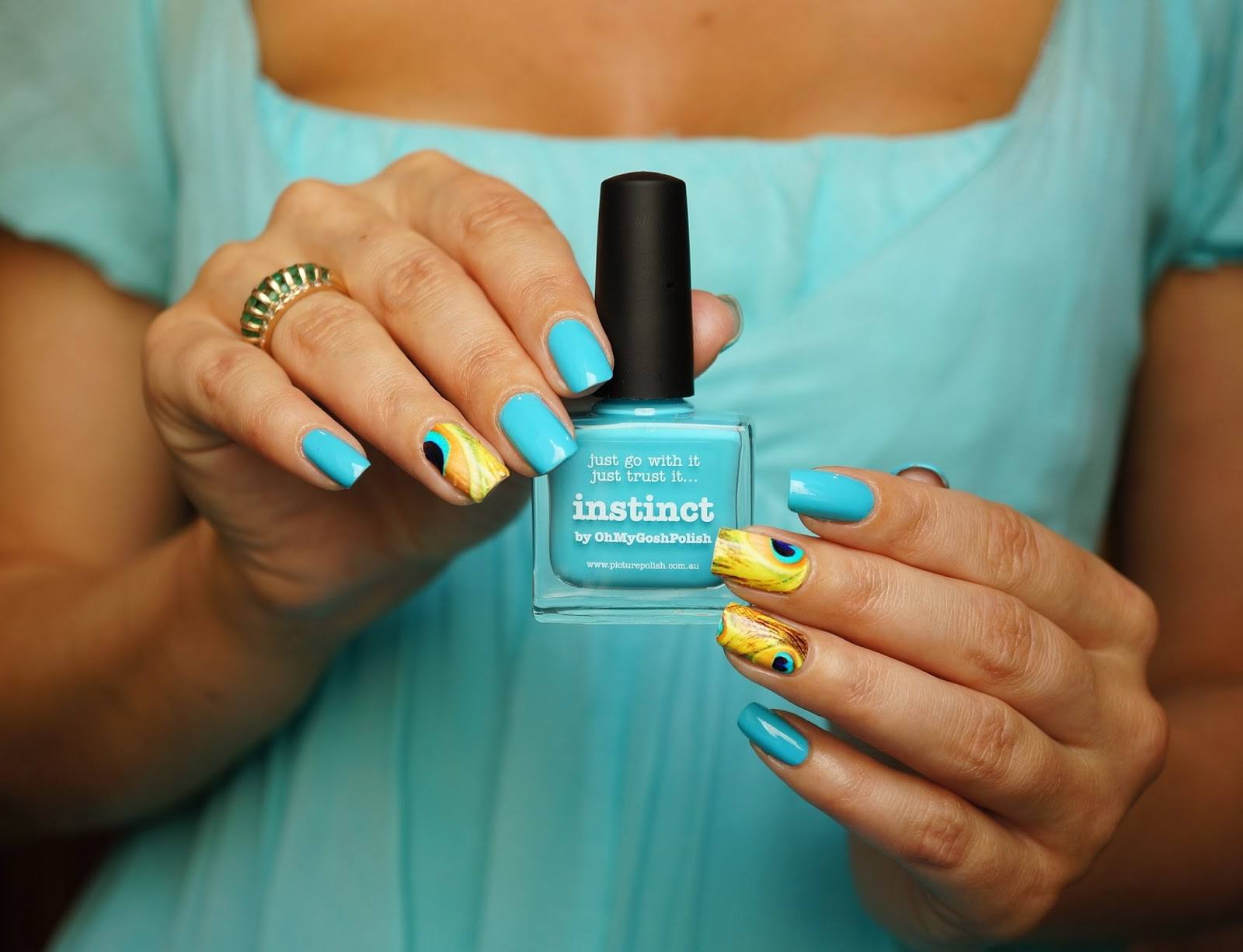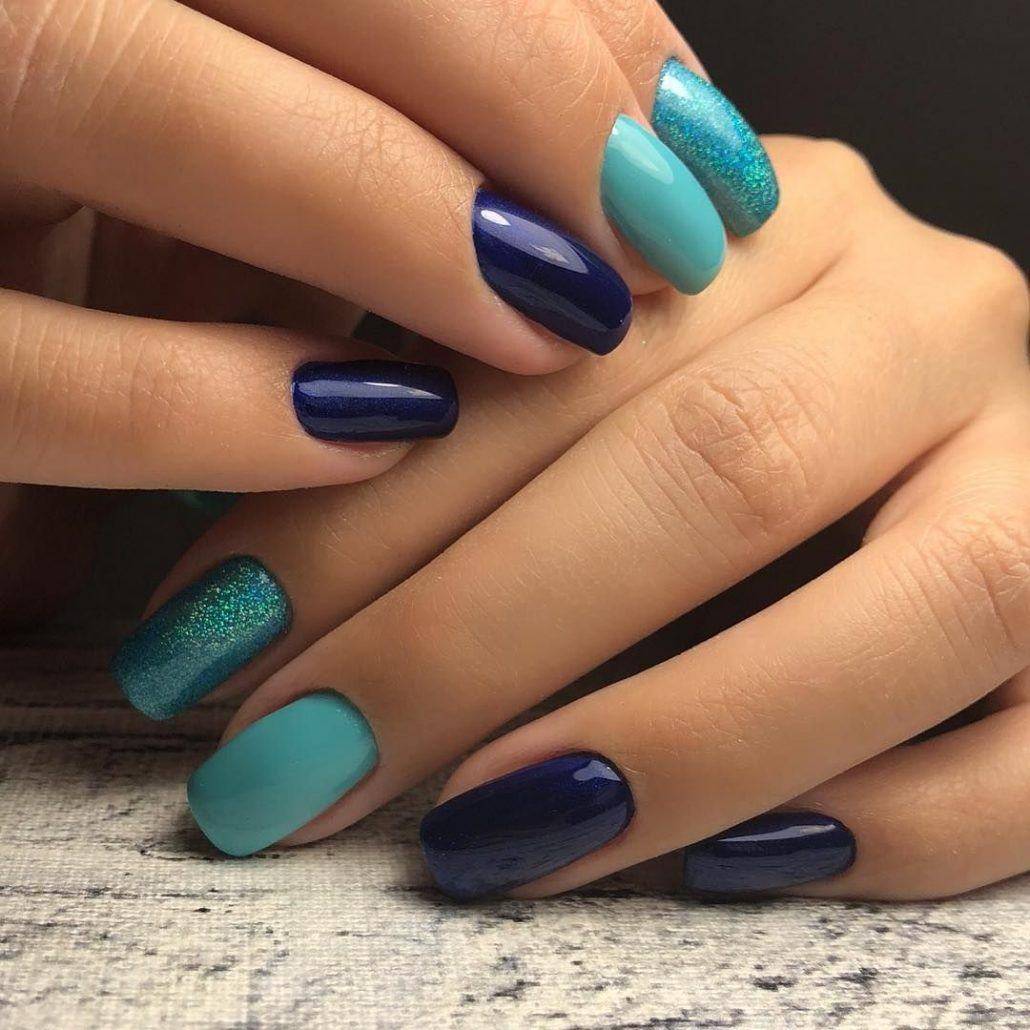 Такое сочетание отлично смотрится в деловых и повседневных нейл-артах. Например, выберите в качестве основного голубой оттенок и ориентируясь на цветовую схему, создайте красивое градиентное оформление на каждом ноготке.