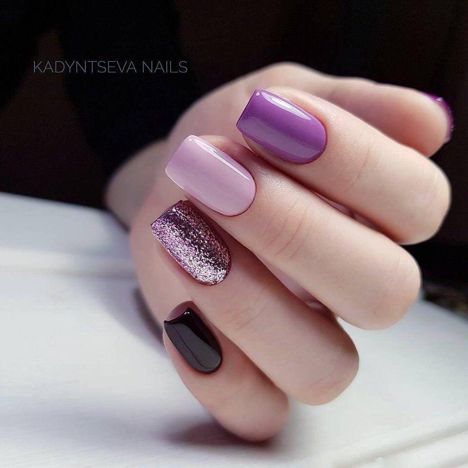 Важно выбирать такие оттенки, чтобы они не сливались с друг другом, не конкурировали между собой. Самый простой и беспроигрышный вариант – это соединить в одном маникюре темные и светлые тона одного и того же цвета
