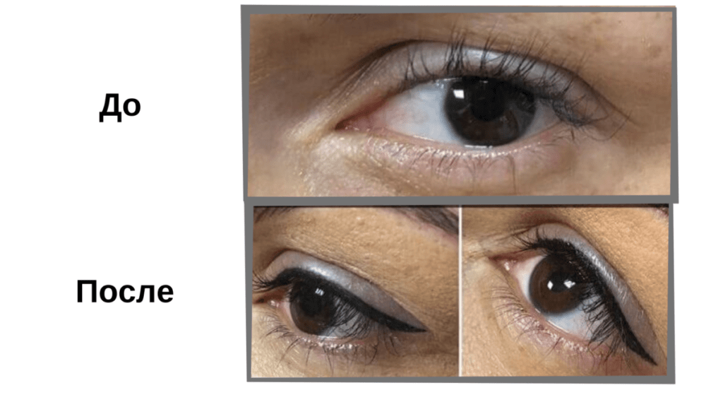 - Неизменный профессиональный макияж глаз без необходимости ежедневно создавать четкий контур, что не у всех получается с первого раза.