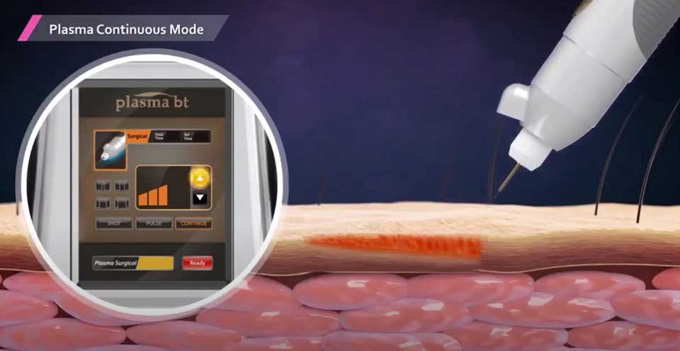 Сеанс холодной плазмы в косметологическом кабинете проводится аппаратом-плазмолайнером, который оснащен ручкой-манипулятором. Во время процедуры косметолог проводит ручкой над обрабатываемыми участками на расстоянии в 2-3 миллиметра от кожи. То есть контакта с поверхностью тела нет.