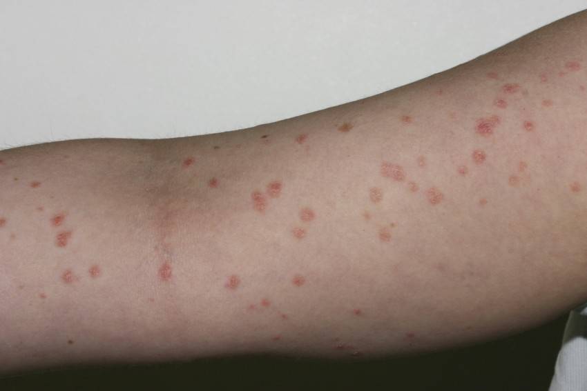 - Стационарный период. Новых высыпаний нет, а те, которые присутствуют на покрове, становятся синюшного окраса. Зуд слабый, шелушение небольшое.