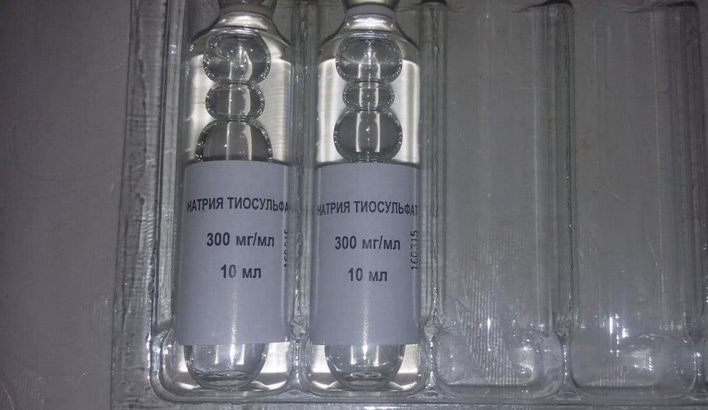 Тиосульфат натрия содержит одноименное действующее вещество и выпускается ампулах. Раствор предназначен для инъекций, однако его можно принимать внутрь, разбавив водой.